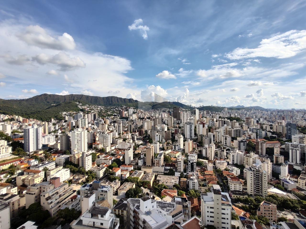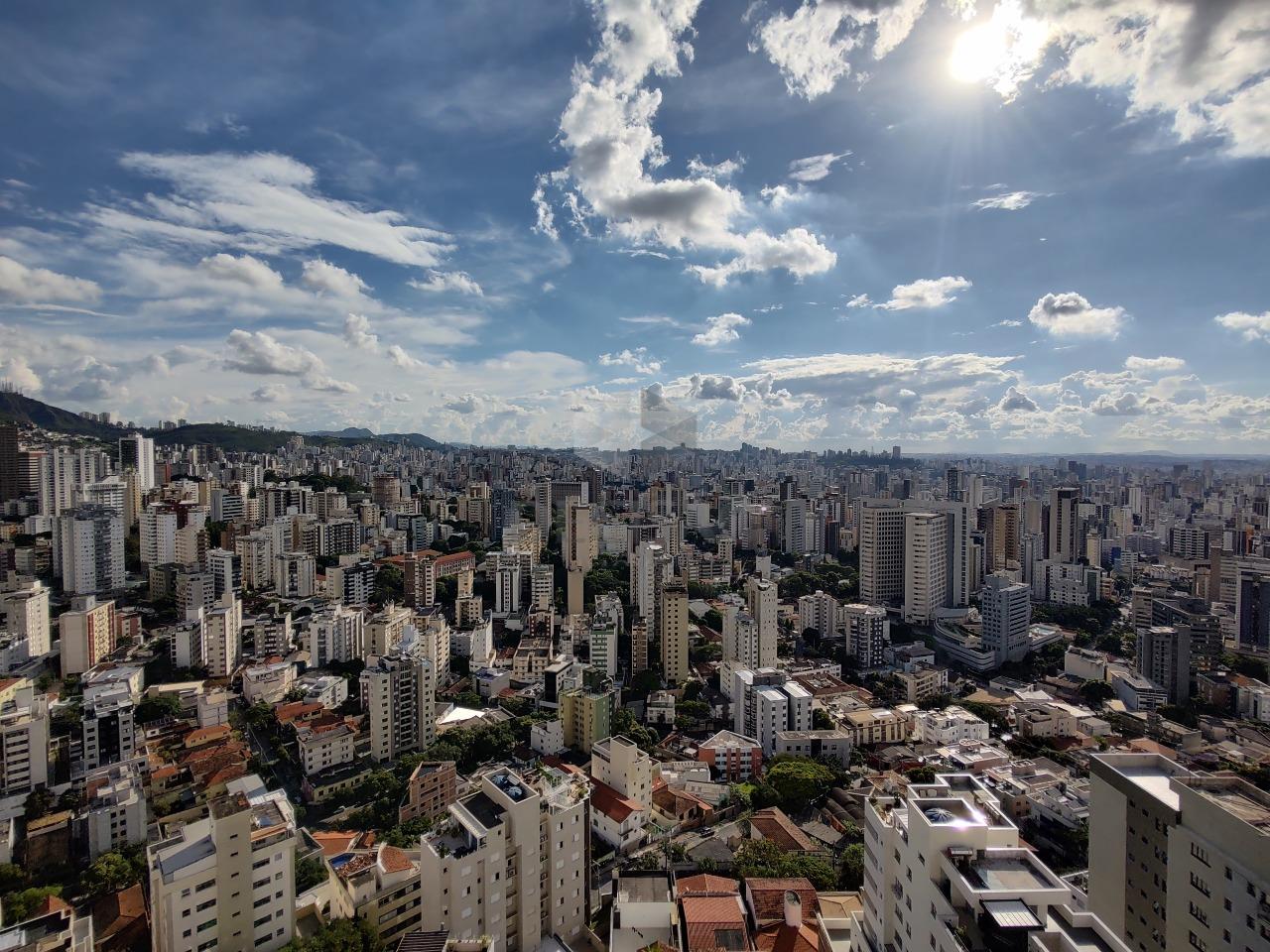 Sala para 02 ambientes (em porcelanato), iluminação planejada, varanda (com vista definitiva), 03 quartos, sendo 01 suíte, banho social, cozinha com armários, área de serviços e dce.