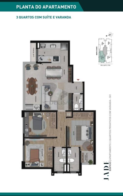OBS: Prédio com 26 pavimentos (sendo o lazer no 27º pavimento) - 04 apartamentos por andar
