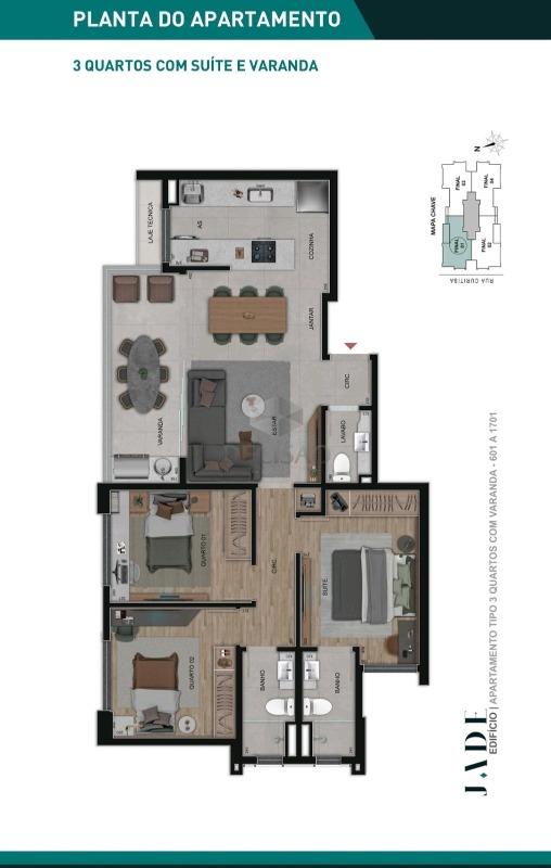 Apto: Com tamanhos de 76m² à 88m² - opções de 01 suíte, lavabo, varanda gourmet ou terraço descoberto (vide tabela)