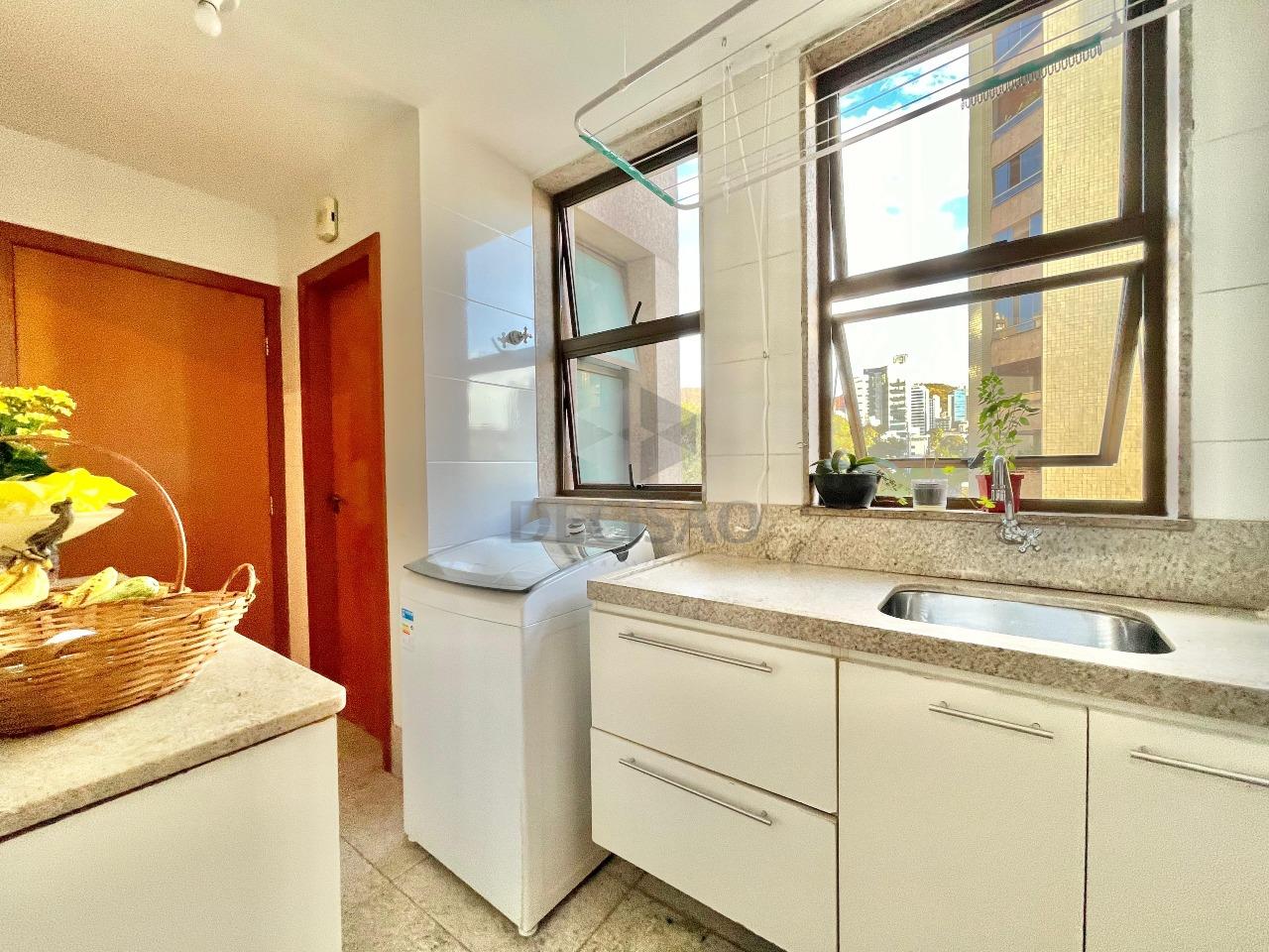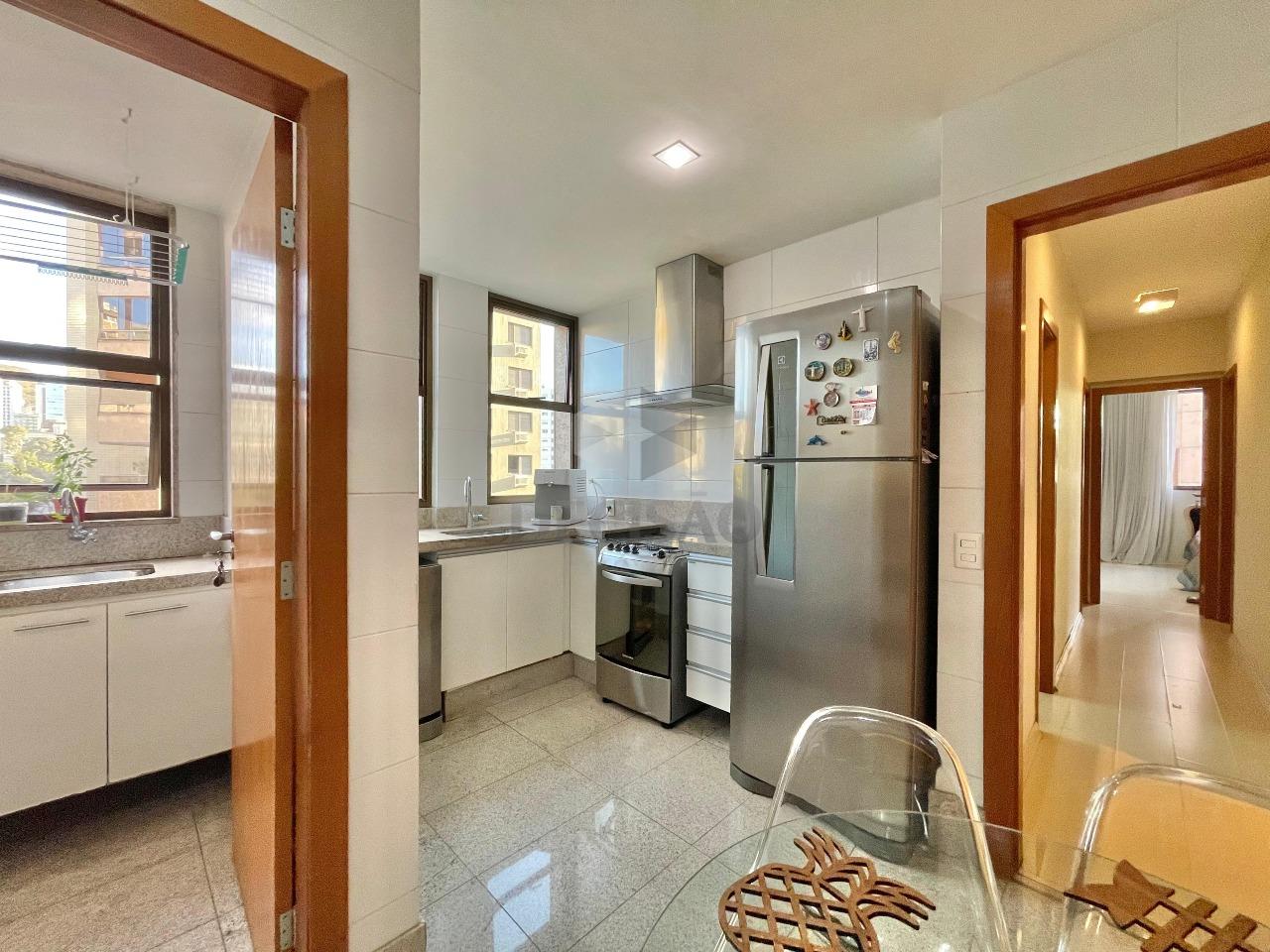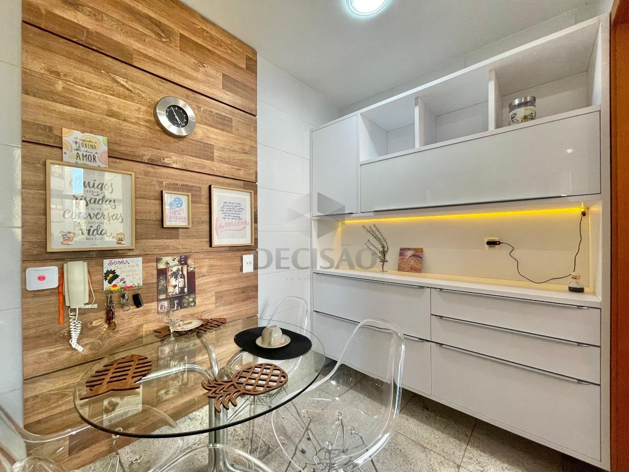 Apto: Salão amplo para 03 ambientes (em porcelanato), rebaixamento de teto e iluminação indireta, lavabo, 03 quartos com ótimos armários, sendo 02 suítes e 01 banho social (com box, armários), cozinha ampla com armários, área de serviços e dce.