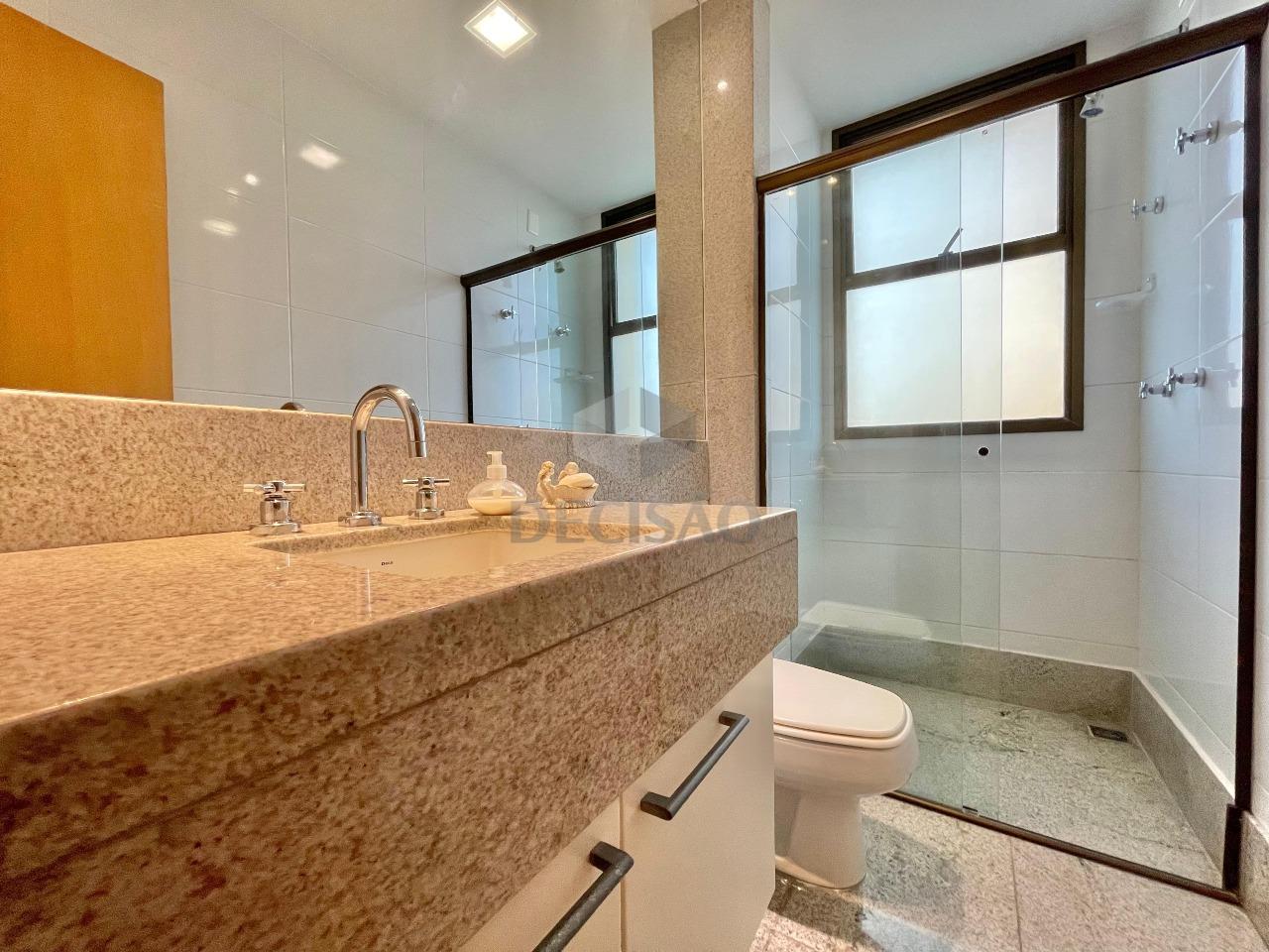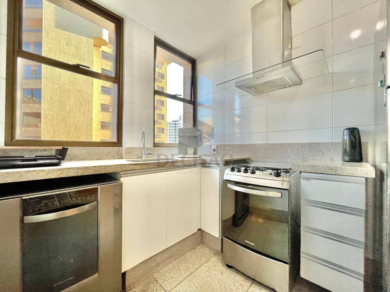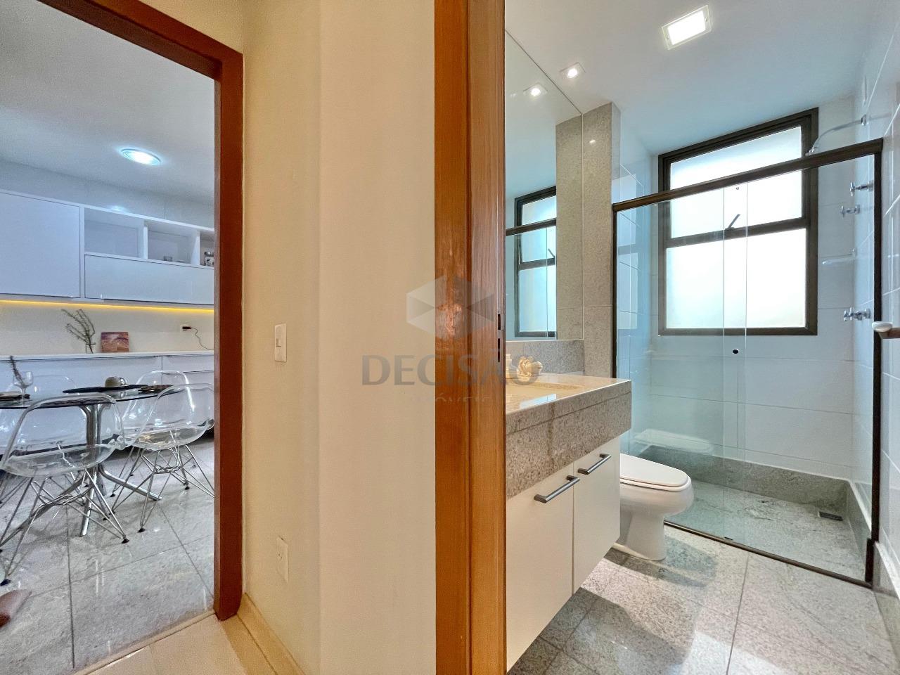 Apto: Salão amplo para 03 ambientes (em porcelanato), rebaixamento de teto e iluminação indireta, lavabo, 03 quartos com ótimos armários, sendo 02 suítes e 01 banho social (com box, armários), cozinha ampla com armários, área de serviços e dce.