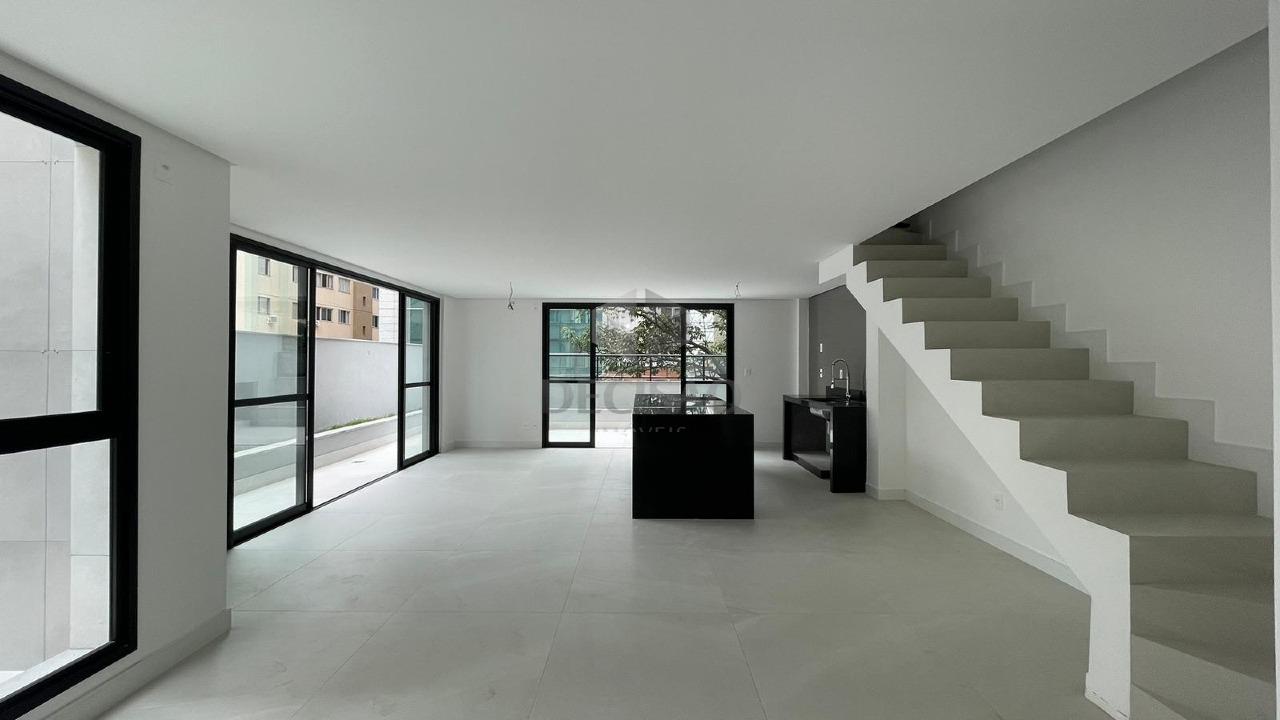 Apto Duplex: 1º Piso: Sala para 02 ambientes, lavabo, cozinha e área de serviços, ampla área livre