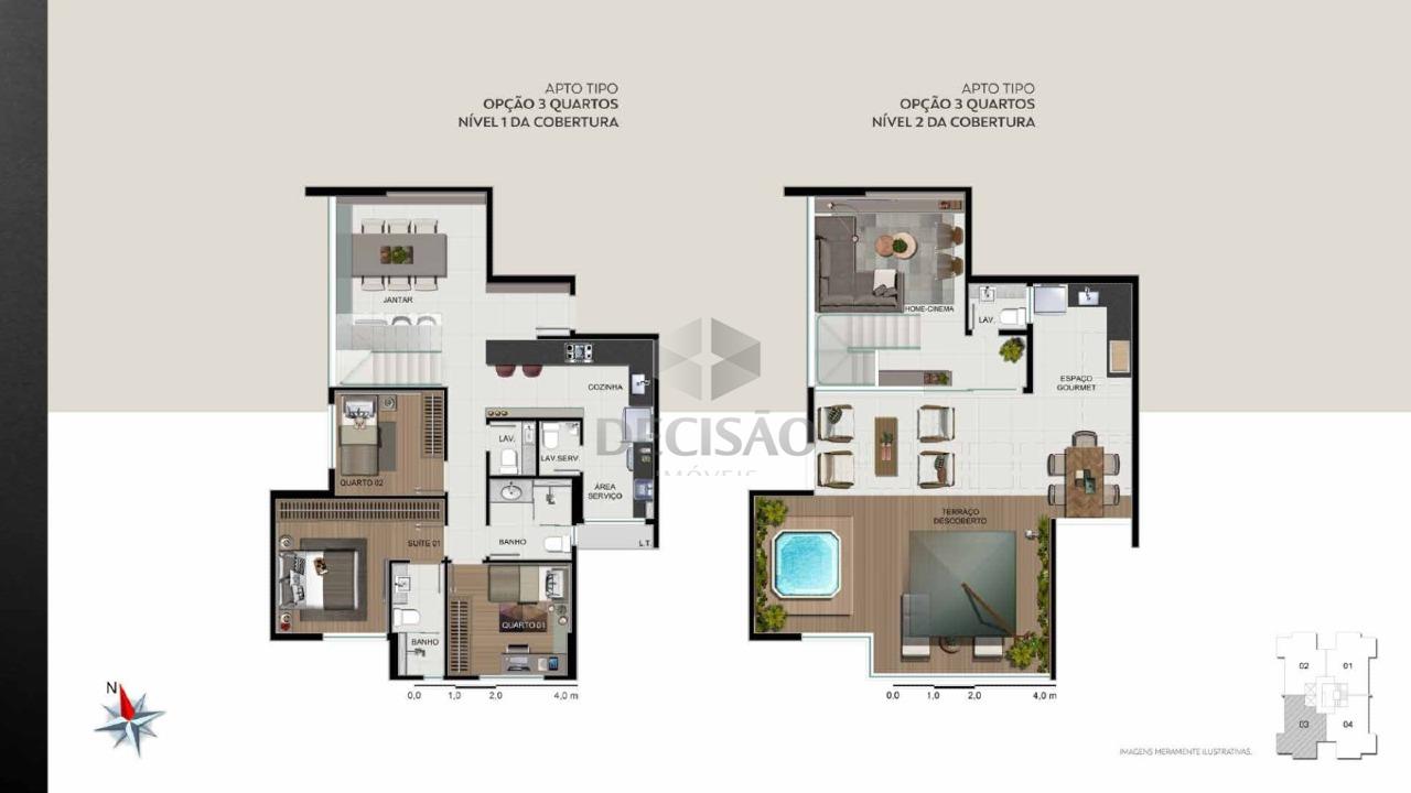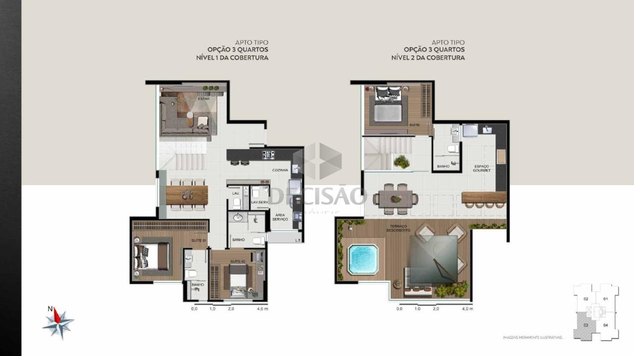 Prédio: Alto luxo, 100% revestido, recuado, jardins, hall social, portaria 24 horas, alarme, circuito tv, água individual, gás canalizado, interfone, jardim, lavanderia, lazer com piscina, salão de festas, mini quadra, bicicletário, lounge gourmet, sauna, academia, adega 01 wing locker por apartamento, sauna, massagem, deck solarium, 02 vagas (vide tabela).