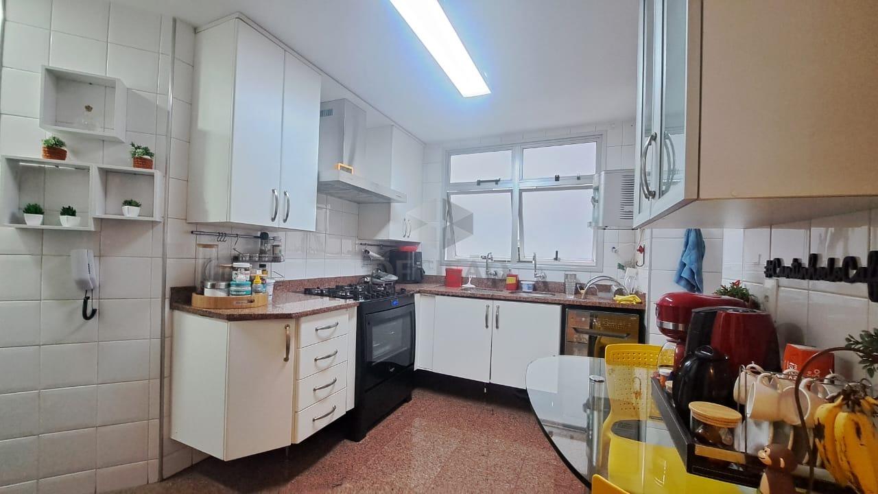 Salão para 02 ambientes, com lavabo, varanda com fechamento em cortina de vidro , 04 quartos com excelentes armários, sendo 01suíte (com closet), rouparia e banho social grande, cozinha enorme com ótimos armários, área de serviços e dce.