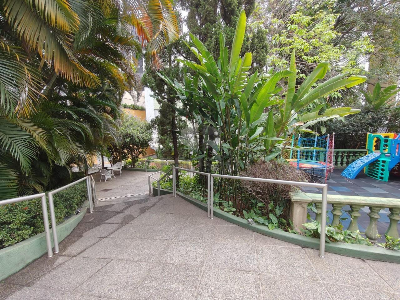 Prédio: Revestido em mármore/cerâmica/pintura, bastante recuado da rua, com jardins tipo bosque, hall social decorado, guarita com porteiro 24 horas, circuito tv, 02 blocos com 04 andar e 01 elevador para cada, circuito tv, gás canalizado, interfone, jardim, lazer com playground, salão de festas, portão eletrônico, 02 vagas em linha no T.