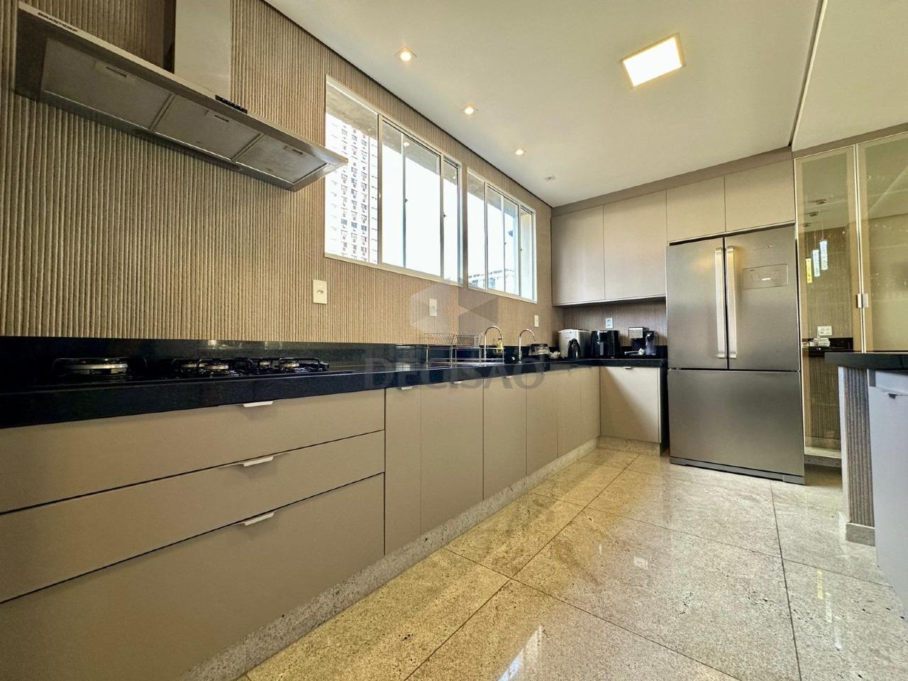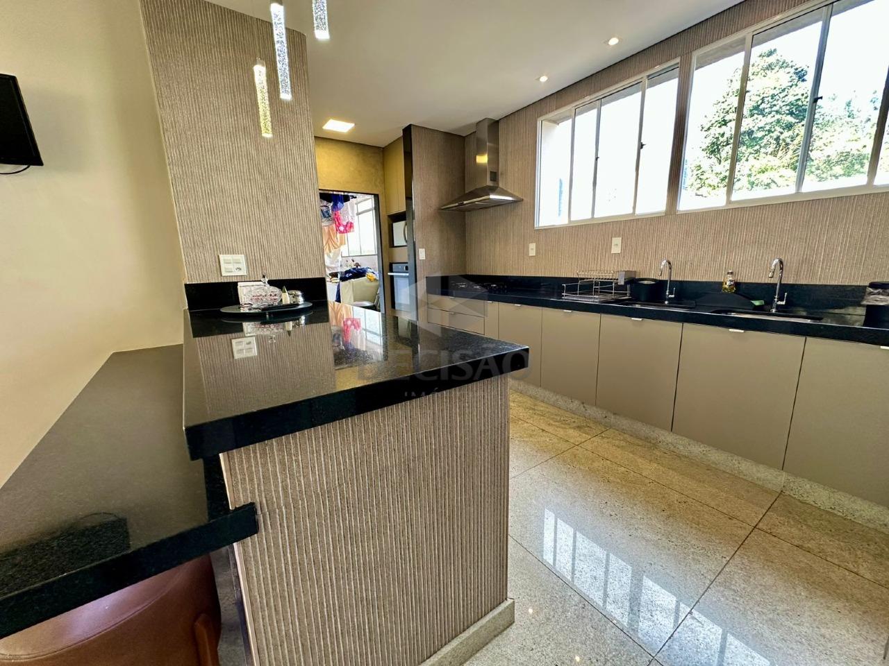 02 salas primeiro para 03 ambientes (piso em granito), teto rebaixado, iluminação planejada, um escritório montado e separado, lavabo, segunda sala de tv, 04 quartos sendo 01 suíte (com closet), banho social (montados), rouparia, cozinha montada com excelentes armários no estilo americana aberto para uma copa excelente com mesa para 10 pessoas, área de serviços, dce e despensa.