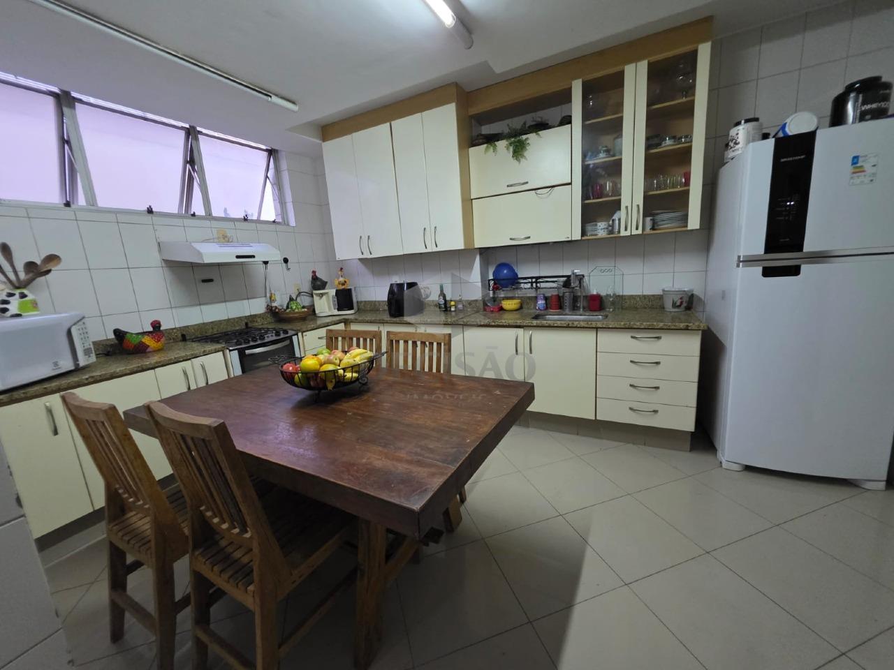 Apto: Salão amplo, lavabo, 01 escritório, estar-intimo, 04 quartos com armários, sendo 01 suíte e 01 banho social (box, armários), rouparia, cozinha ampla com armários, área de serviços e dce.