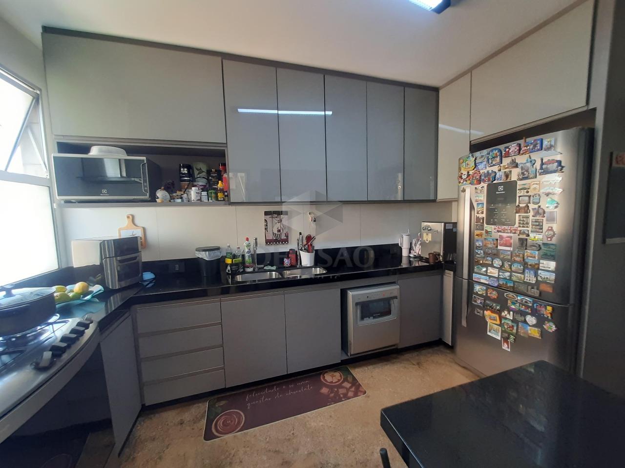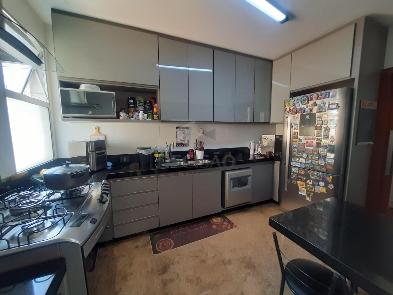 02 salões interligados, lavabo, 04 quartos com armários, sendo suíte ampla, com closet, rouparia, banhos com box blindex e armários sob bancada, ótima cozinha com muitos armários, despena, área de serviços com armários, dce.