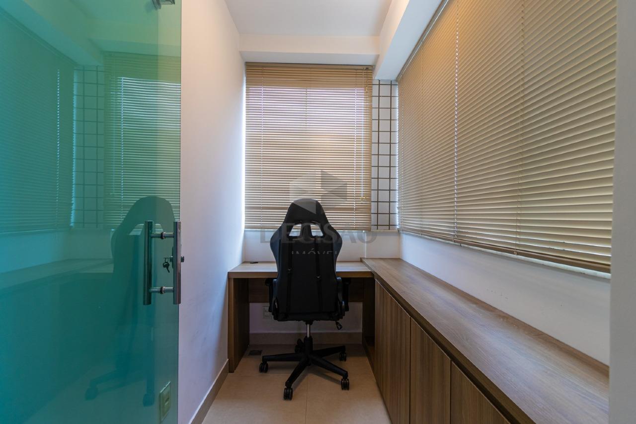 Sala para 02 ambientes, com iluminação planejada, espelho, janelão com linda vista, varanda incorporada, 04 quartos com ótimos armários, sendo 01 suíte com home office, banho social e suíte, com box blindex e armários sob bancada, cozinha ampla com muitos armários e bancada para refeições, lavabo, área de serviços.
