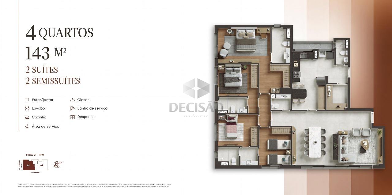 Prédio: Alto padrão, revestido em granito aerado, amplo hall social, portaria 24 horas, água individualizada, alarme, gás canalizado, interfone, jardim, lazer com piscina com prainha, salão de festas, espaço gourmet, fitness, sala de massagem, espaço kids, playground, mini mercearia, portão eletrônico, 02 vagas (vide tabela).