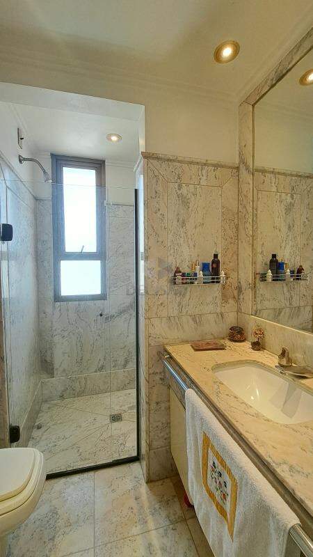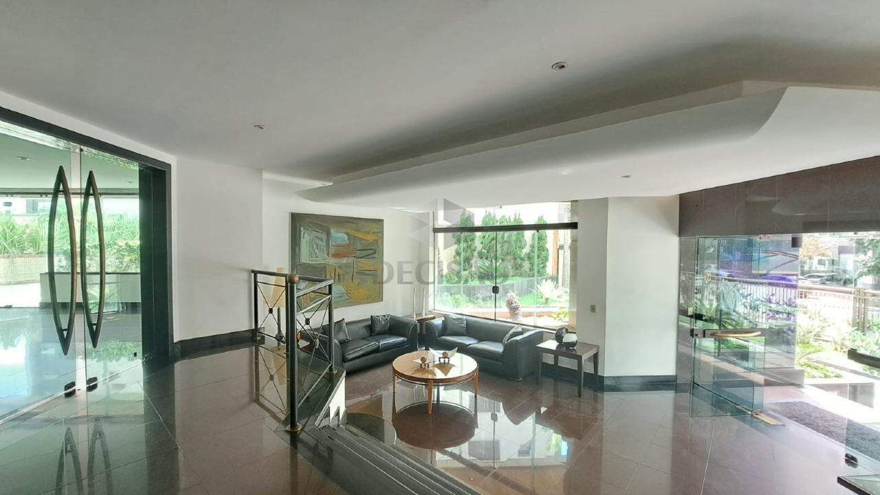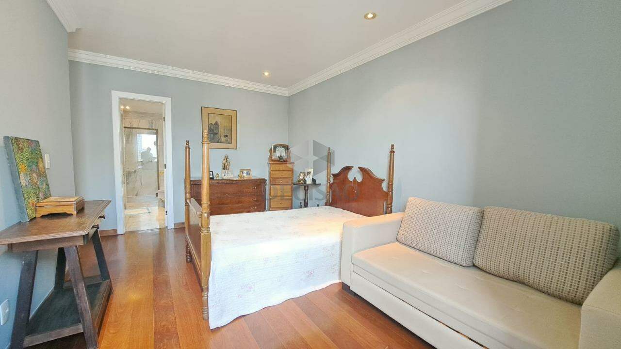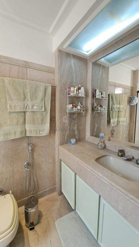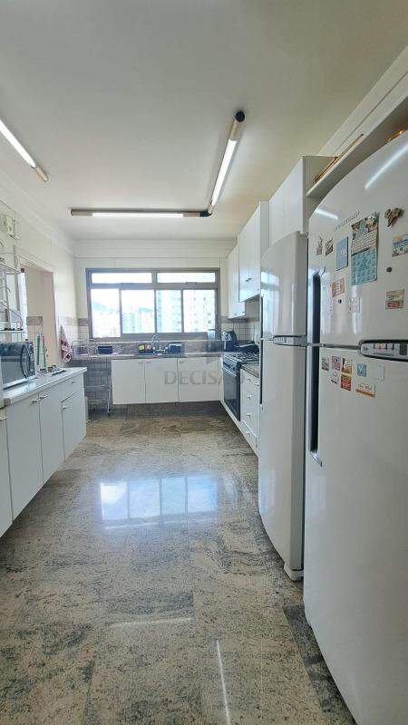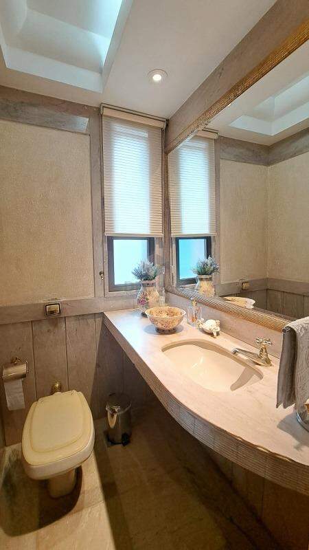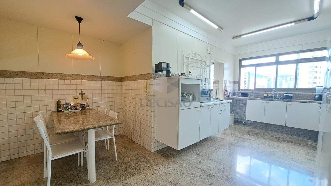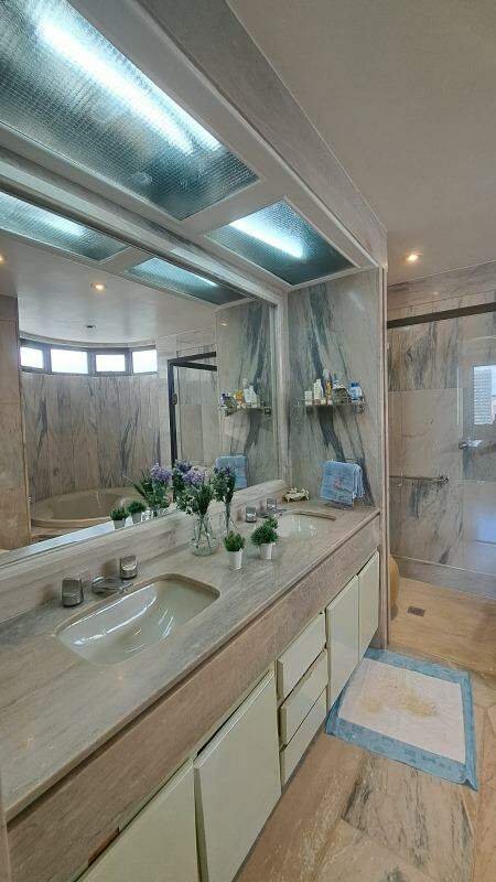 Sala para vários ambientes, com lavabo, varanda e vista definitiva (piso em mármore Carrara), sala de jantar para 10 convidados, 04 quartos sendo 02 suítes + 02 semi-suítes, closet e rouparia e suíte principal com hidro separada do box, cozinha enorme com mesa de apoio para 06 pessoas (piso e bancadas em granito), área de serviços e dce.