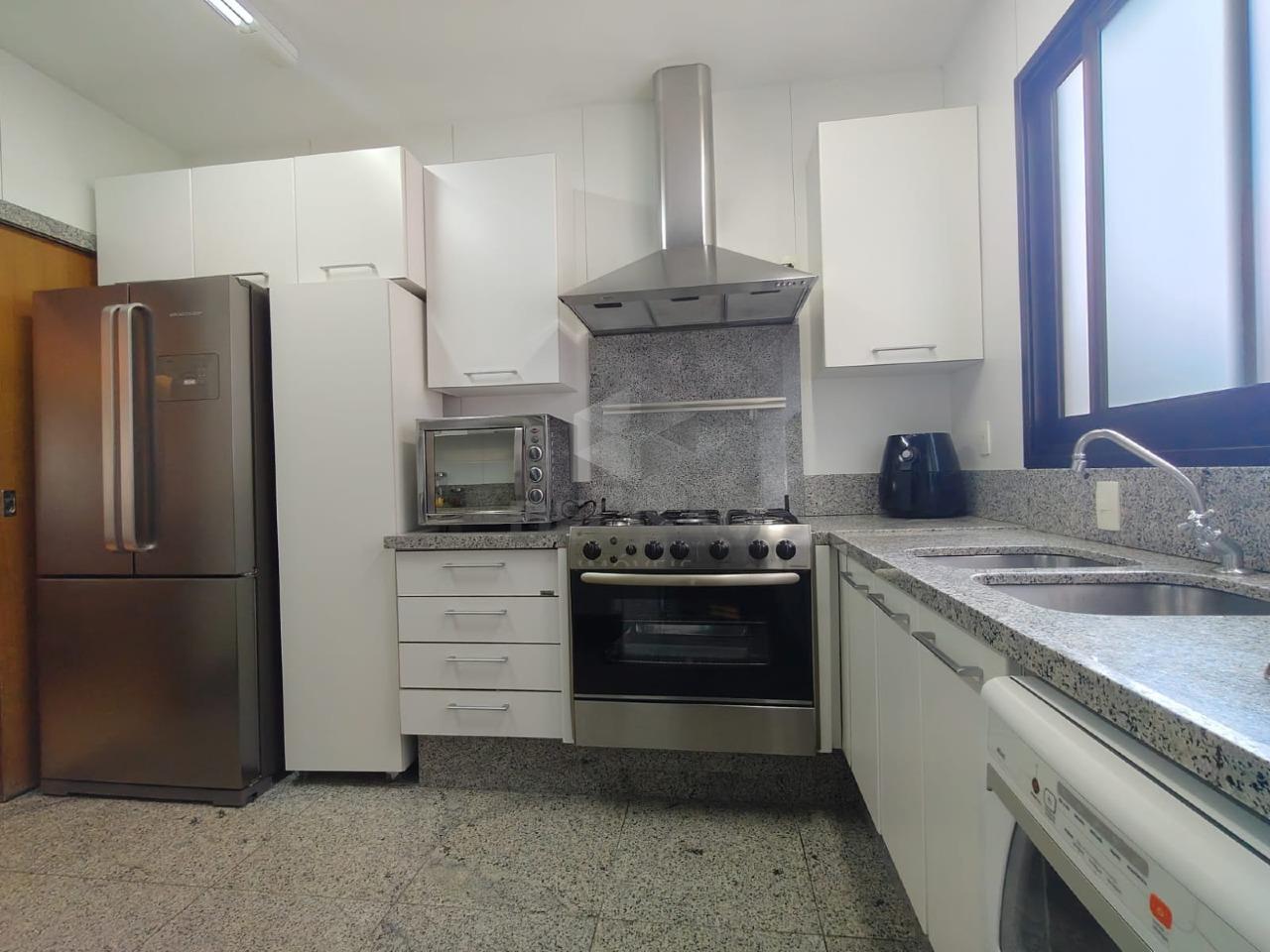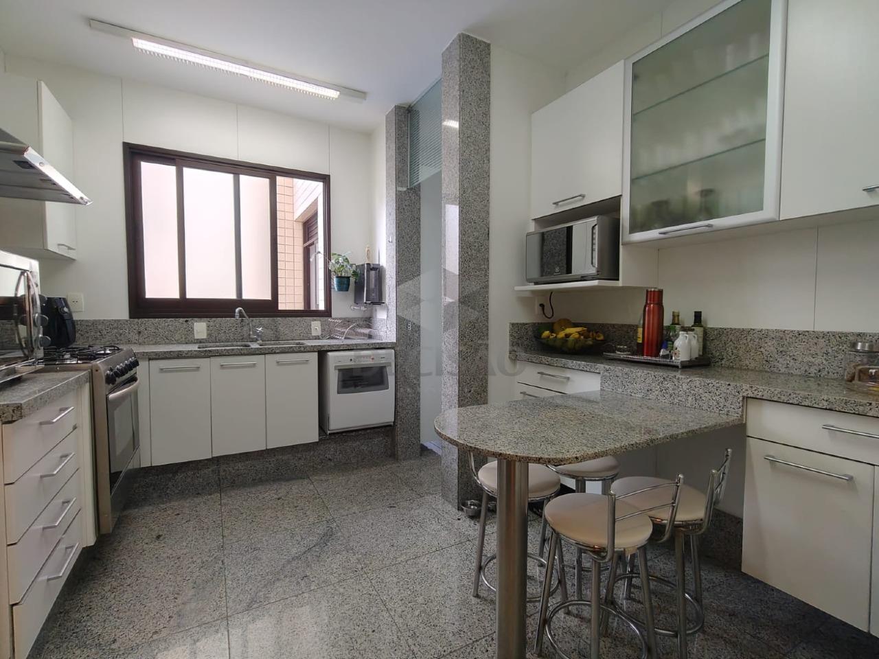Salão para 03 ambientes (em granito), teto rebaixado e iluminação indireta, lavabo, varanda com cortina de vidro, 04 quartos com armários (sendo que 1 foi transformado em estar-intimo - fácil reversão), sendo 02 suítes (01 master com closet e hidro), banho social (todos montados), cozinha ampla com armários, área de serviços e dce.