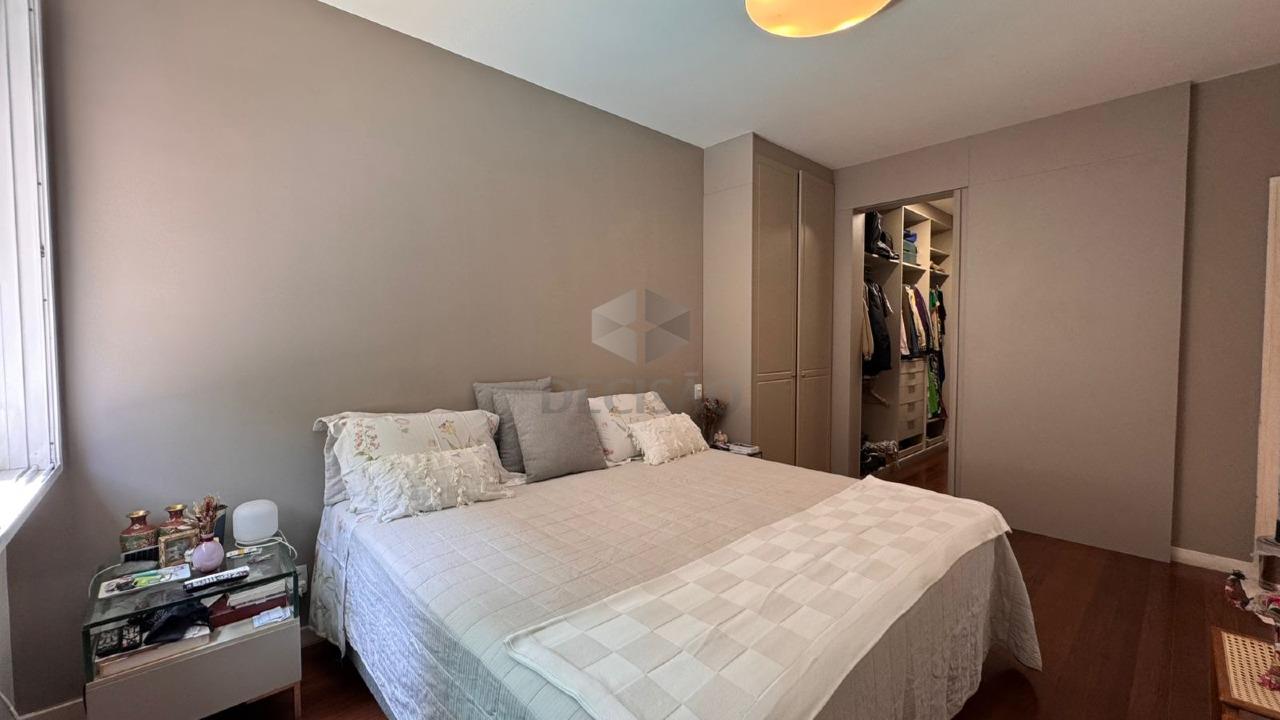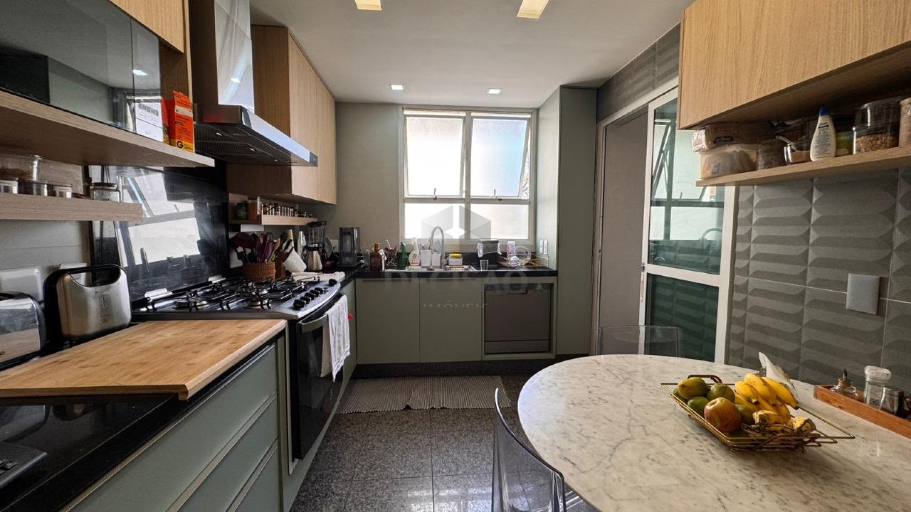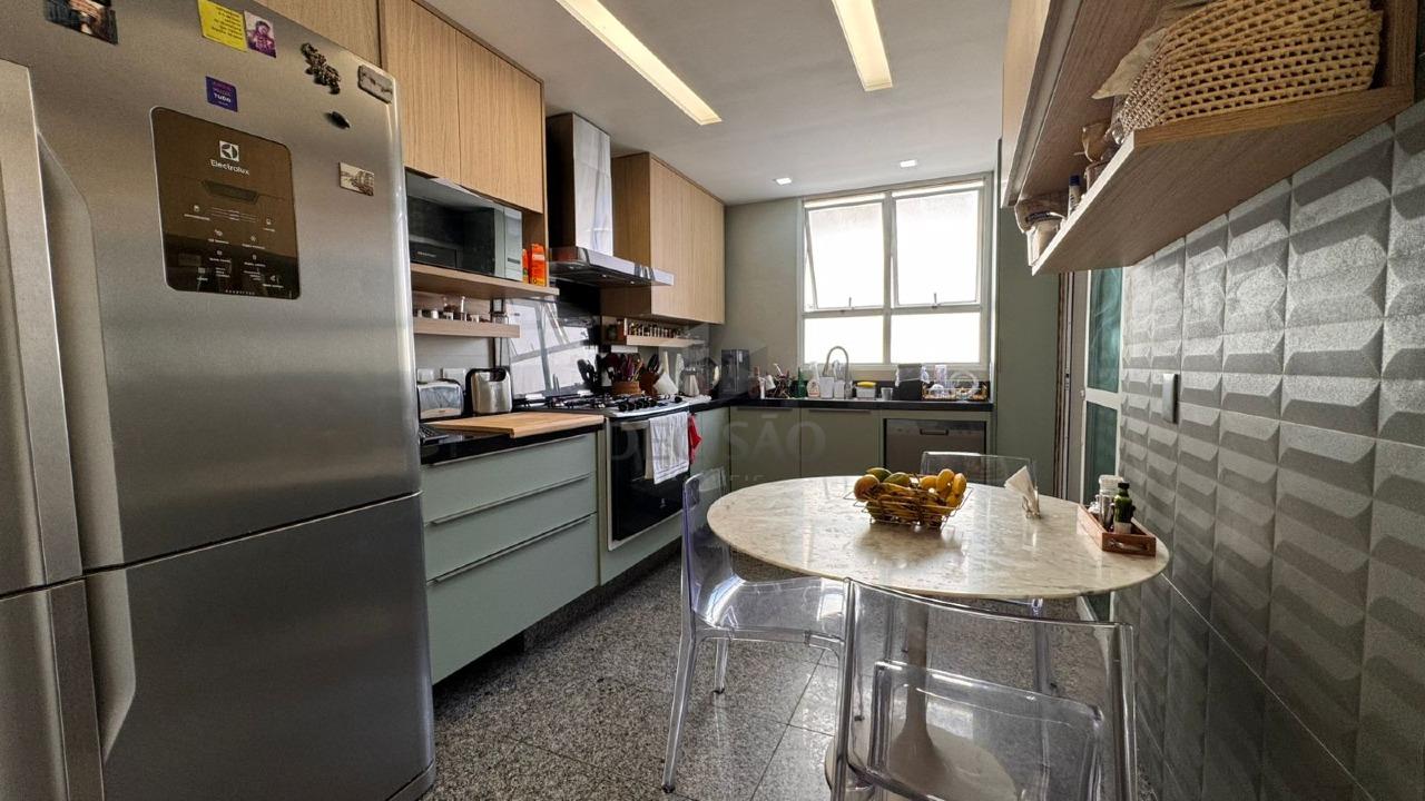 Apto: Sala espaçosa com varanda estendida com a possibilidade de área gourmet, 04 quartos com armários, sendo 02 suítes, lavabo e banho social (com box, armários reformados), rouparia, cozinha com armários, área de serviços, despensa.