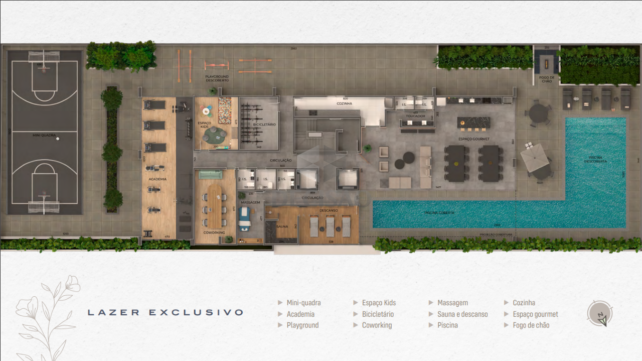 Prédio: Alto luxo, super bem localizado, moderno, revestido, elevadores, jardins, hall social, alarme, gás canalizado, interfone, água individual, jardim, lazer completo com academia, churrasqueira, piscina, playground, quadra de esportes, salão de festas, salão de jogos, sauna, portão eletrônico, 03 vagas (vide tabela).