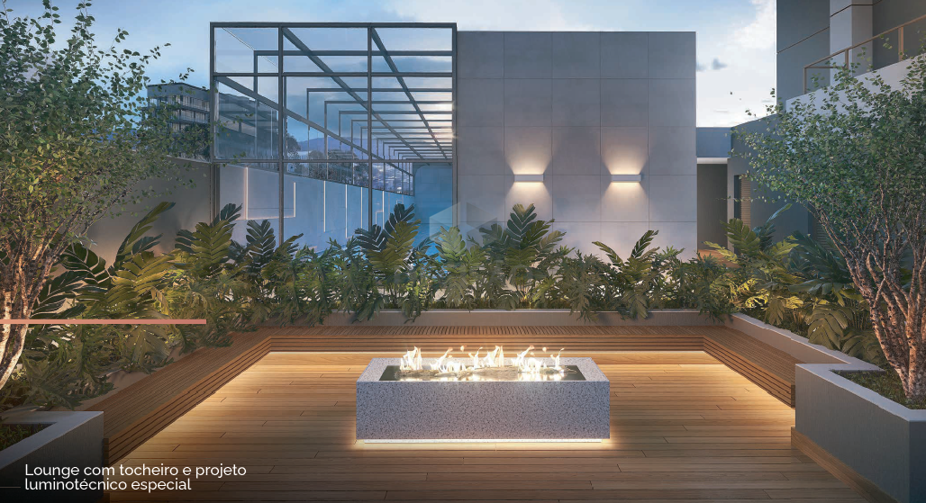 OBS: 02 chuveiros na suíte master, infraestrutura para ar-condicionado na sala e nos quartos, tratamento acústico no piso dos quartos e da sala, acabamento de alto luxo, previsão de toma para carro elétrico (01 por apartamento), janelas com venezianas integradas e automatizadas.