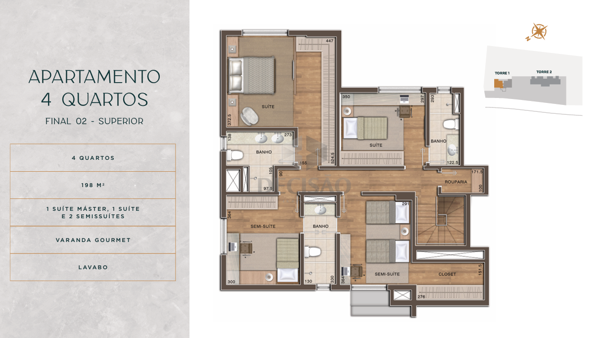OBS: O apto 701 - 04 quartos, 03 vagas - 198,04m² (vide anotações internas)