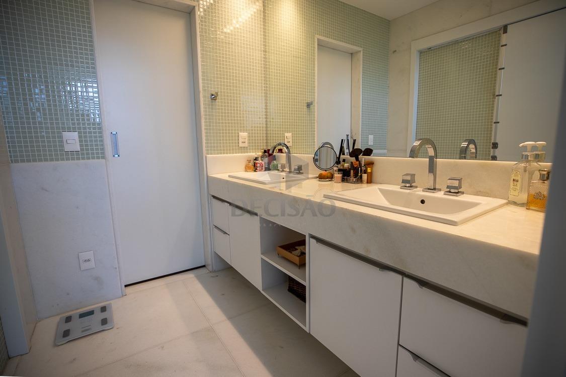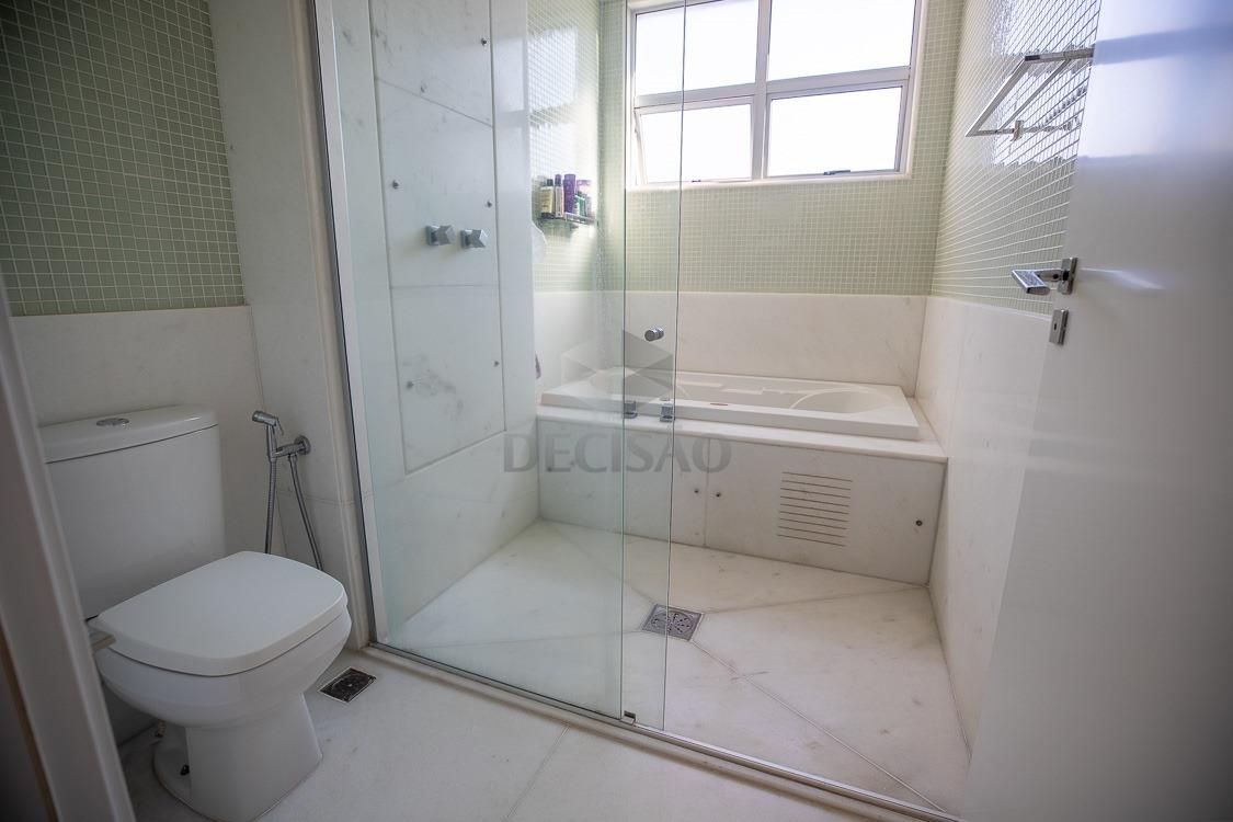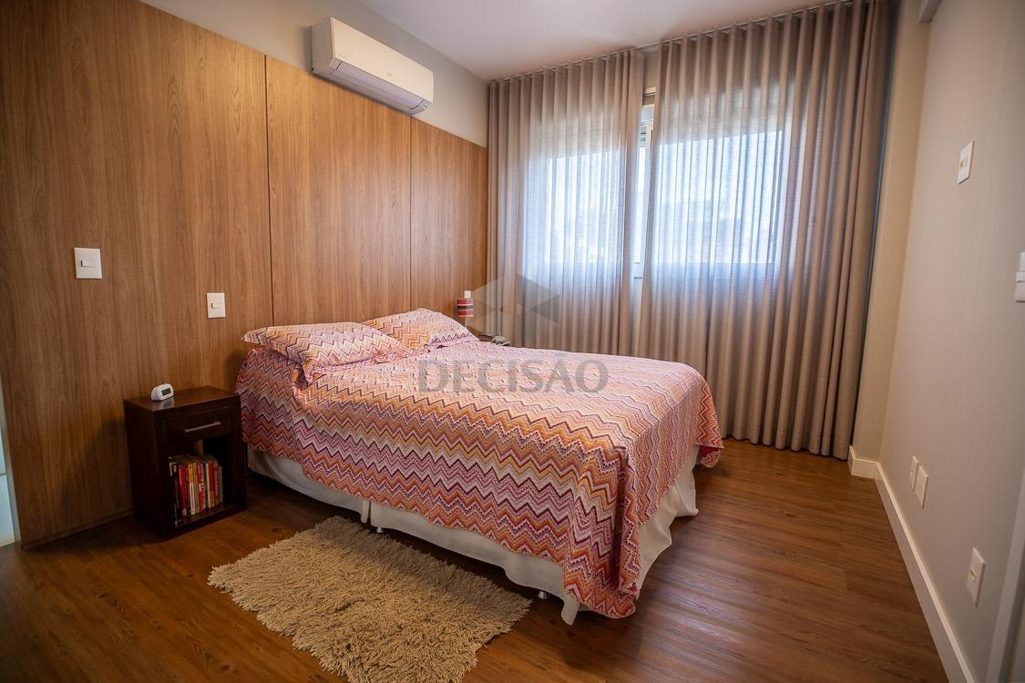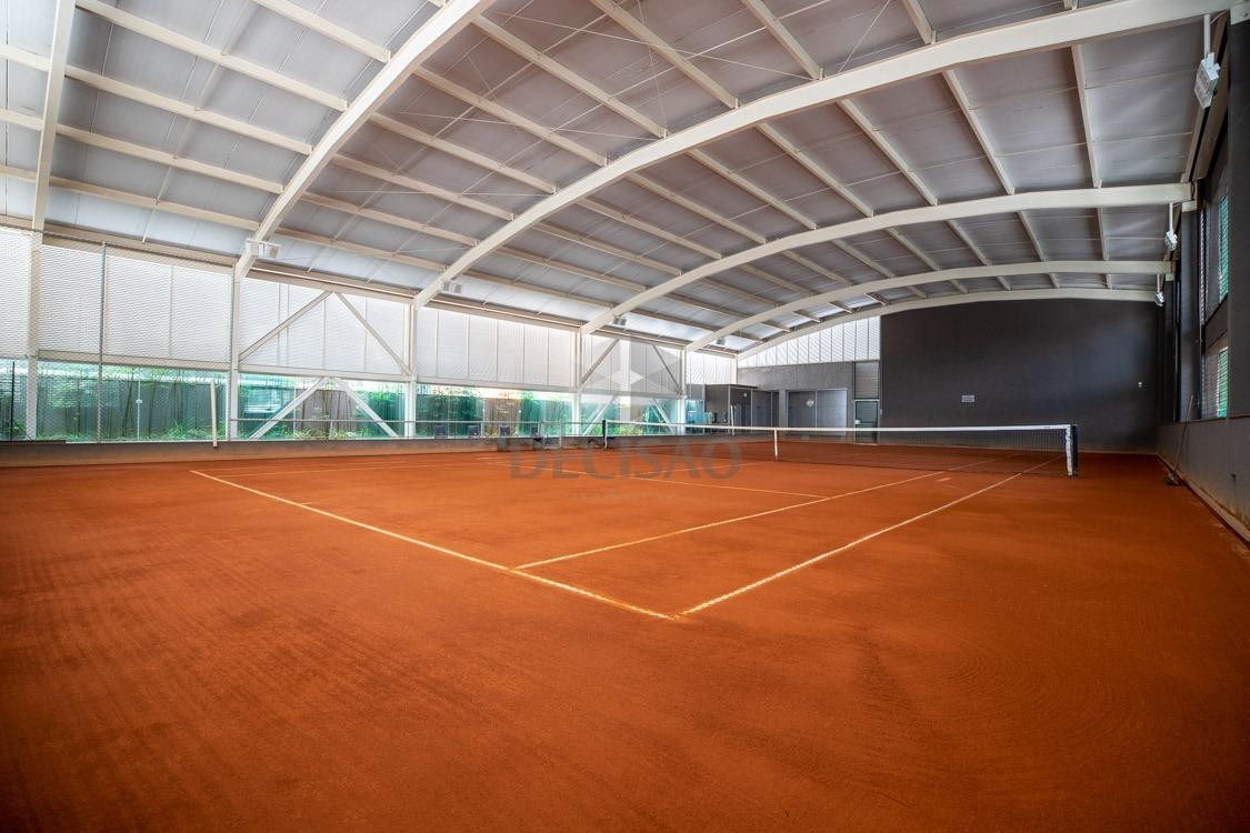 Prédio: Bem localizado, revestido em granito, jardim frontal, sistema de segurança, hall social decorado, portaria 24 horas, 03 elevadores, medidores de água e gás individualizados, poço artesiano, aquecimento gás com passagem individual, estrutura para ar-condicionado na sala e quartos, alarme, cerca elétrica, circuito tv, interfone, lazer com piscina aquecida, salão de festas, espaço gourmet, sala de jogos, espaço kids, academia, quadra poliesportiva, sauna com sala de descanso, quadra de tênis coberta em saibro (placa de fotovoltaica), portão eletrônico, 04 vagas + box despejo.