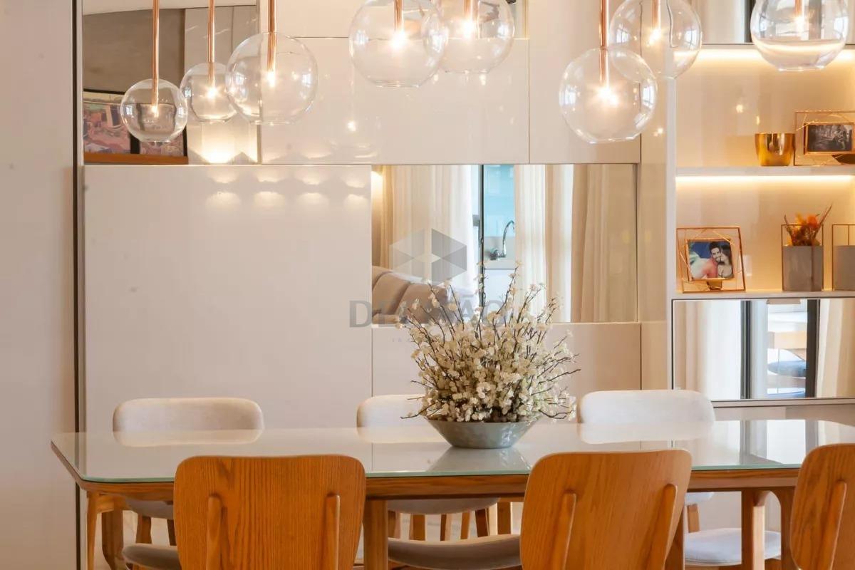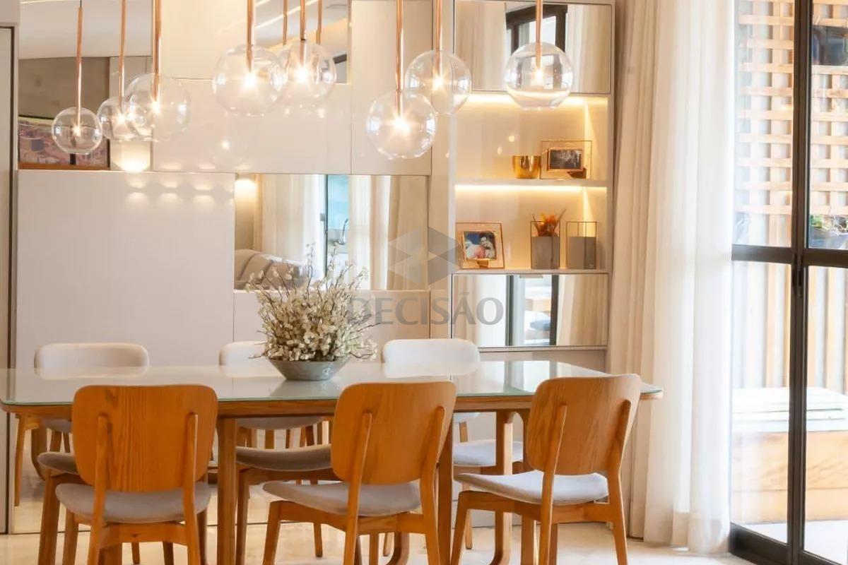 Apartamento: Sala com 02 ambientes com lavabo e varanda gourmet, 04 quartos sendo 02 suites e 02 semi suites, banhos montados, cozinha estilo americana com armários, area de serviços e DCE.