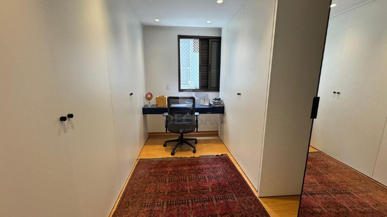 Salão para até 03 ambientes (em porcelanato), com varanda integrada, iluminação toda planejada, lavabo, original são 04 quartos (sendo transformado em 3 quartos), sendo 02 suítes (umas delas sendo master com 02 closet) e um escritório, pisos em laminado, todos montados, cozinha repleta de armários, área de serviços e banho de serviços.