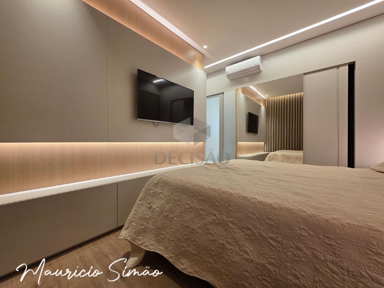 Apto: Decorado, amplo, salão para vários ambientes com marcenaria e iluminação, lavabo, área gourmet montada, vista definitiva, 04 quartos com armários, sendo 02 suítes amplas com armários, closet, e 02 semi-suítes, cozinha planejada com armários, despensa, área de serviços e dce.