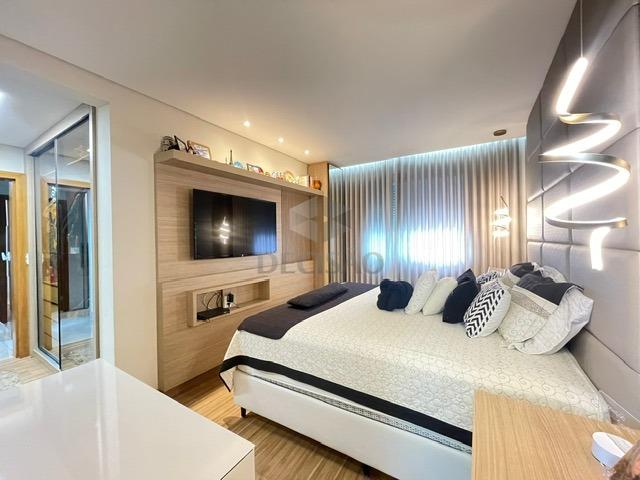 Sala para 02 ambientes (em porcelanato) com varanda gourmet com churrasqueira, móveis planejados, lavabo, 04 quartos com armários, sendo 03 suítes (a master com closet), cozinha com armários, área de serviços e dce.