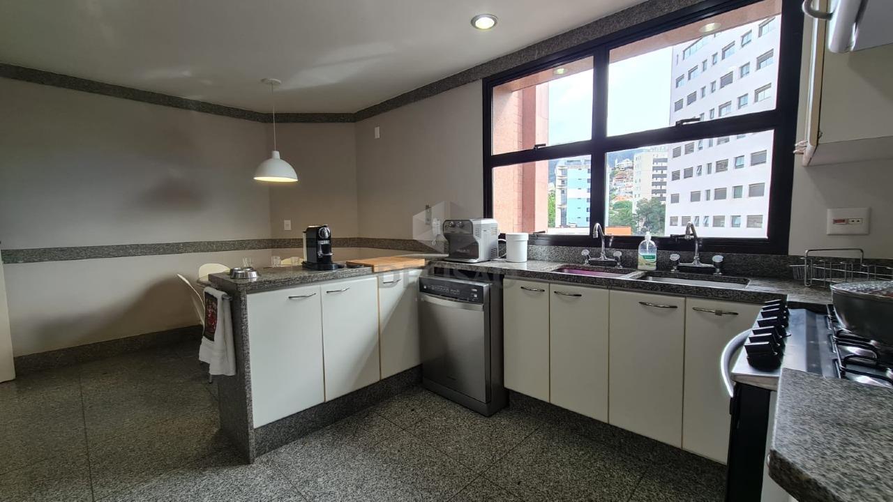 Salão para vários ambientes (em mármore), teto rebaixado e iluminação indireta, lavabo, varanda incorporada com vista maravilhosa para o Minas e Parque das Mangabeiras, escritório, estar-intimo, 04 quartos com armários, sendo 04 suítes (01 com hidro outra master com closet e hidro - todas montadas), rouparia, copa, cozinha com armários, área de serviços grande, despensa, dce.