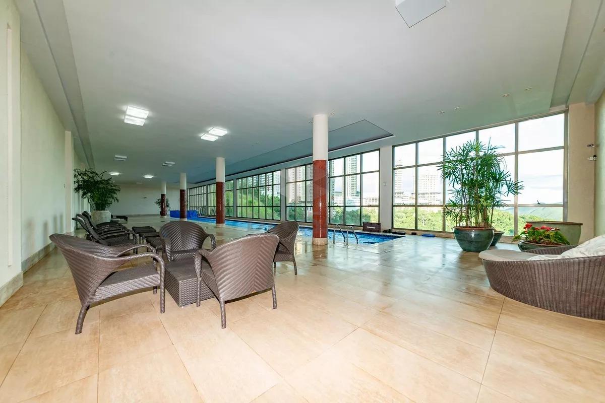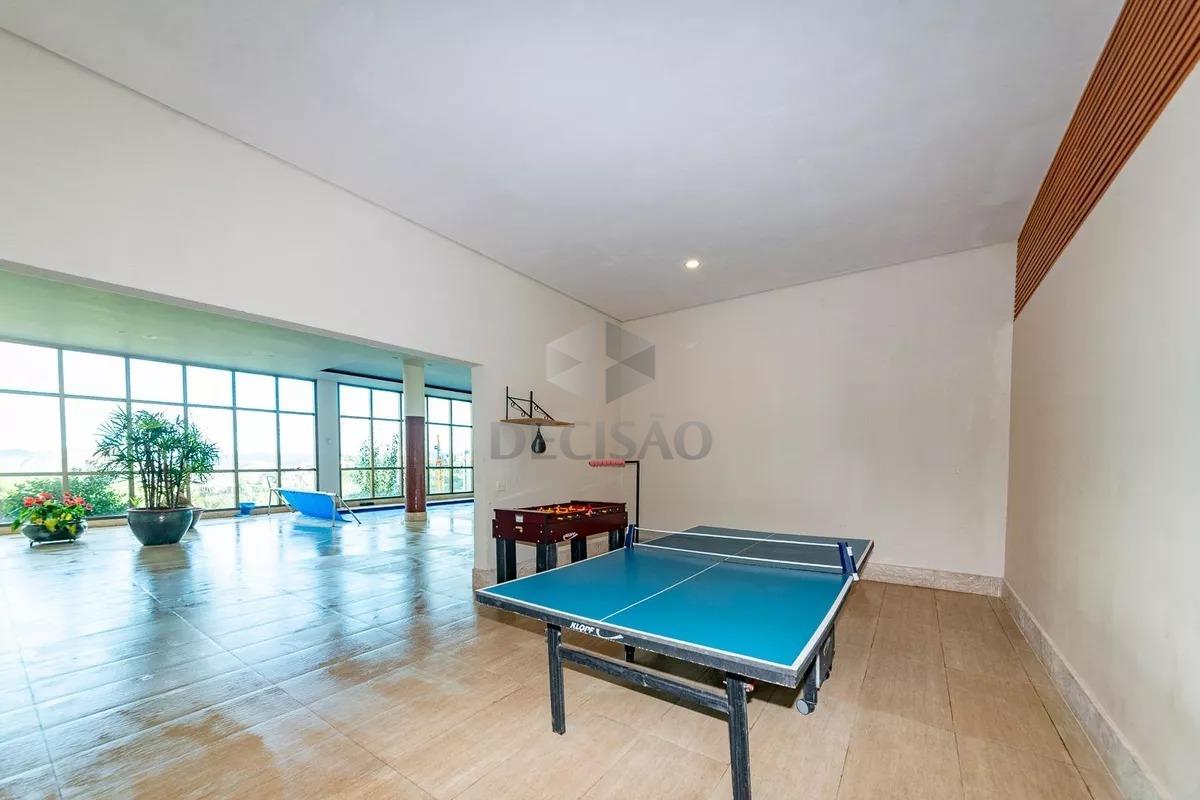 Prédio: Alto luxo, próximo Alameda Oscar Niemeyer, parte alta do bairro, portaria 24 horas, hall social, composto por 02 torres, 01 apartamento por andar, água e gás individualizados, alarme, cerca elétrica, circuito tv, interfone, jardim, lazer com salão de festas, espaço gourmet, piscina coberta com raia aquecida, piscina descoberta, academia espaçosa, quadra de tênis de saibro, playground, quadra poliesportiva, lava jato na garagem, portão eletrônico, 04 vagas paralelas e box.