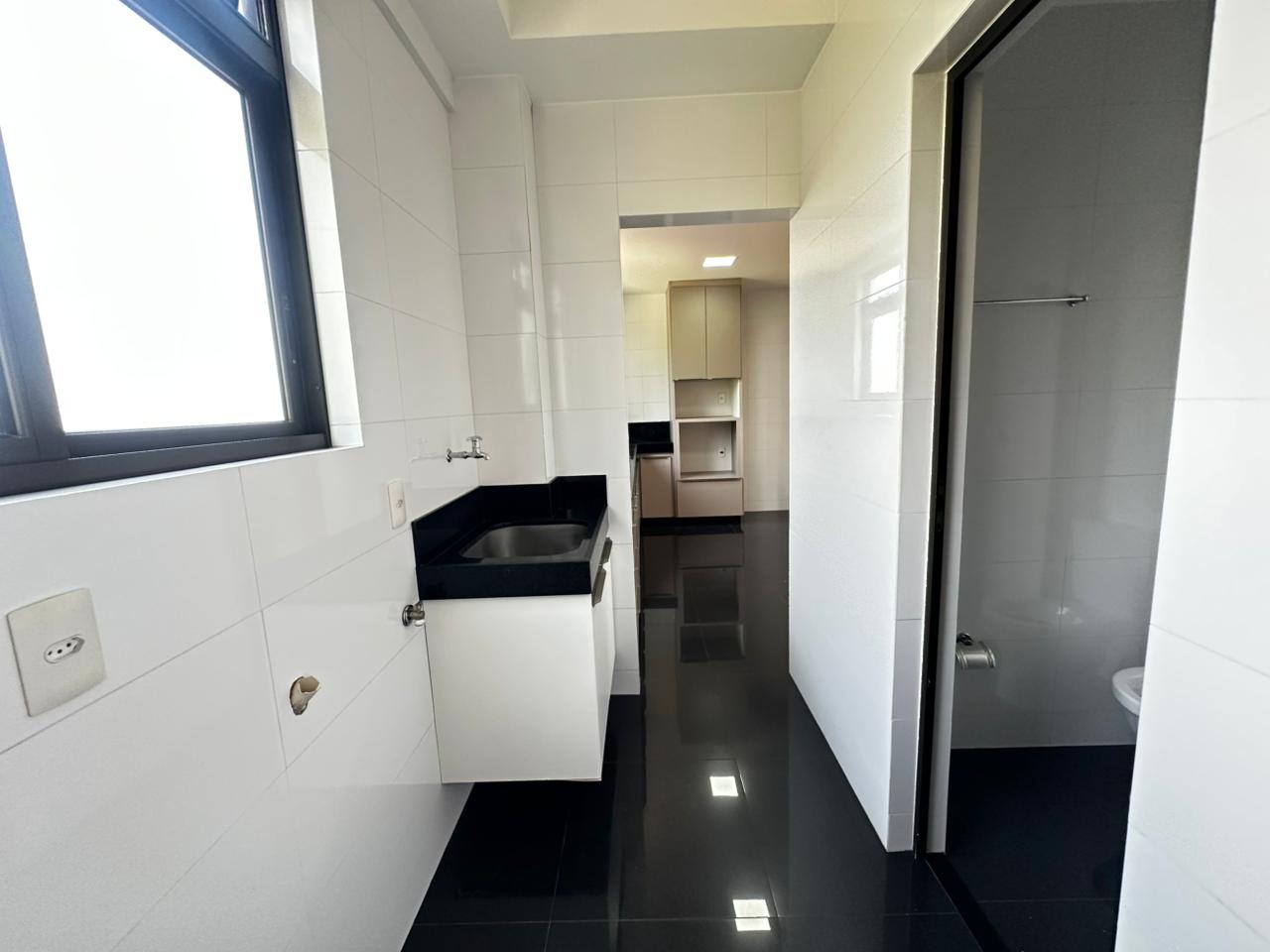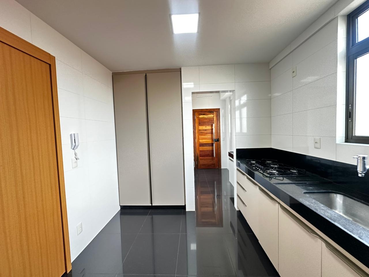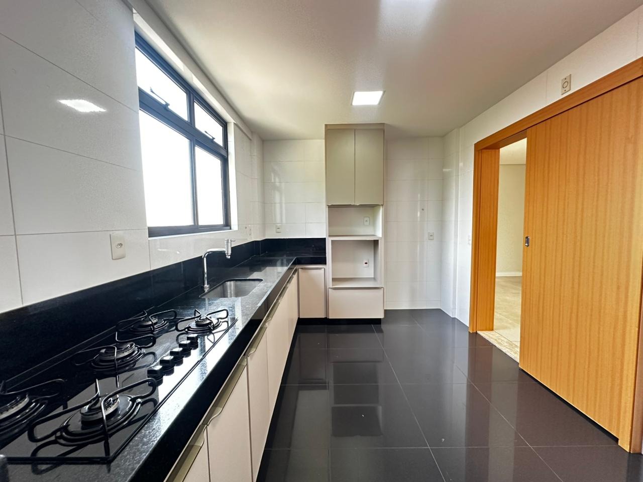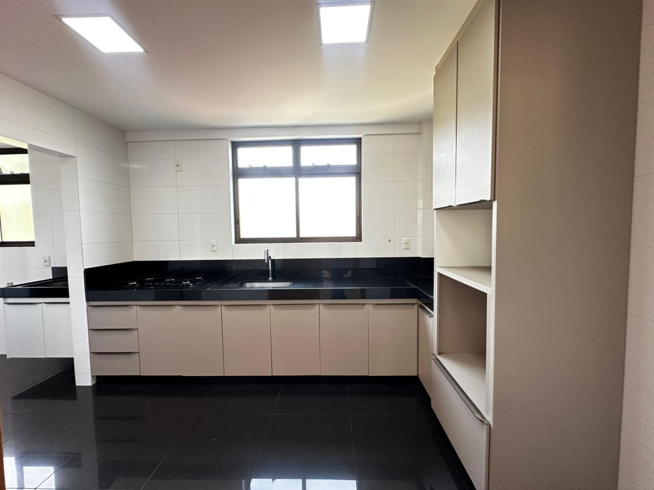 Cozinha espaçosa, bem iluminada e arejada, com excelente quantidade de armários, além de área de serviço independente com banheiro de apoio.