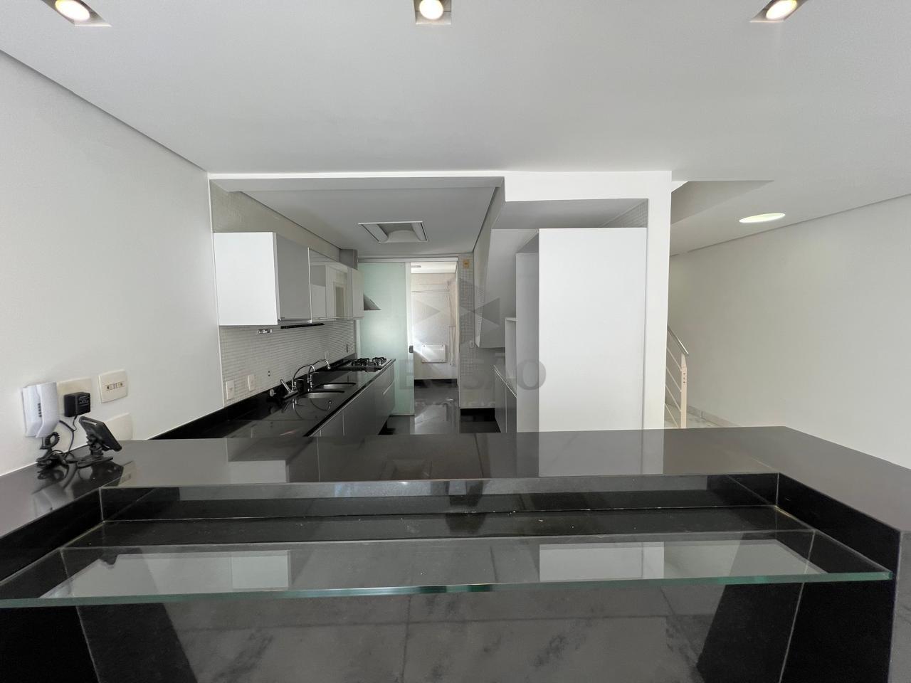 Apto Duplex: 1º Piso: Sala ampla, clara, lavabo, cozinha com armários, área de serviços com banho.