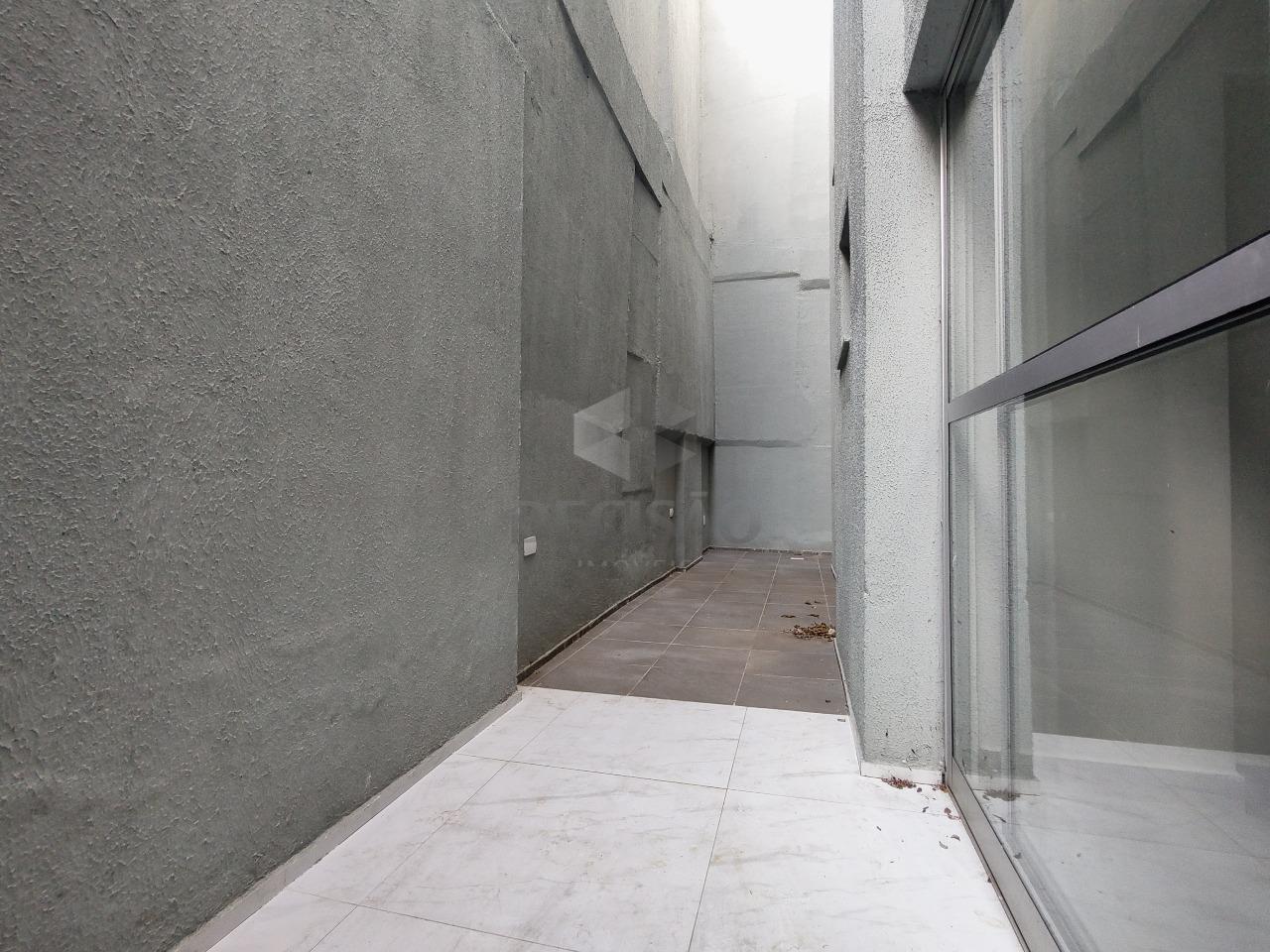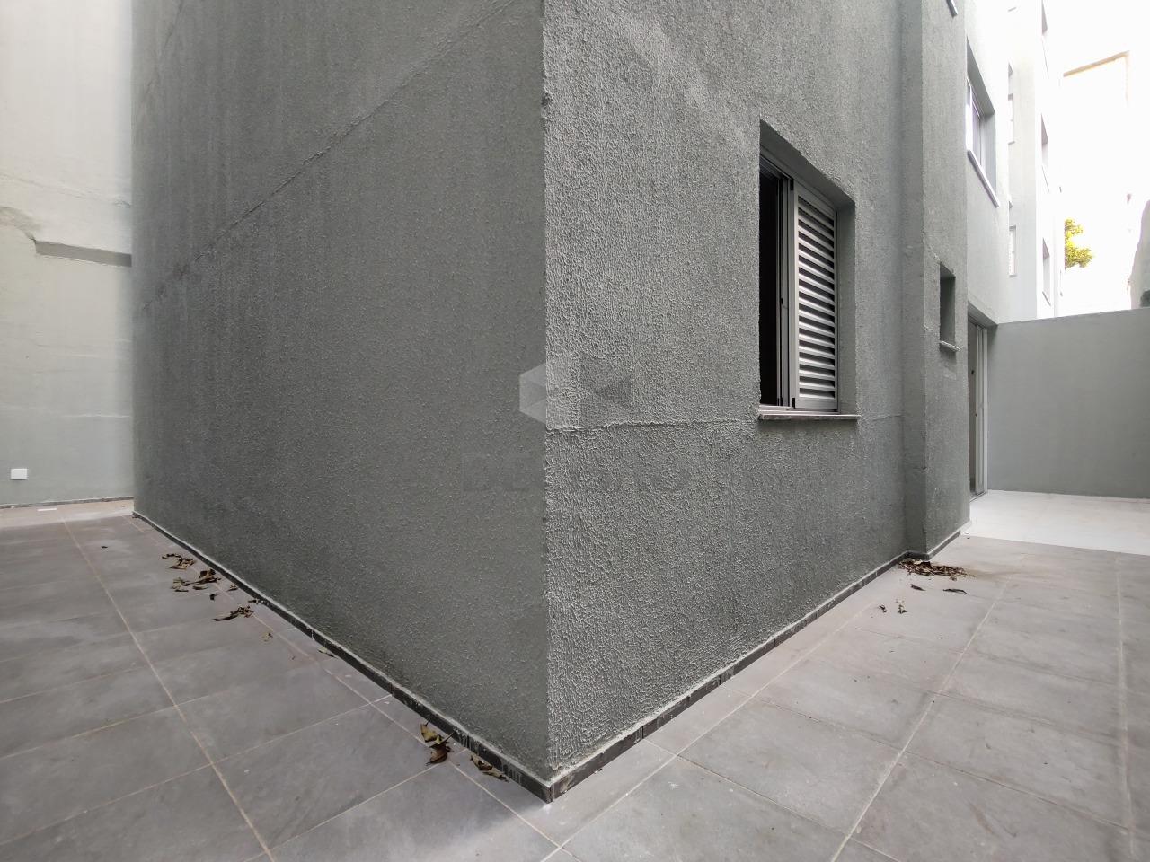 Apto: Sala para 02 ambientes (porcelanato), 02 quartos, sendo 01 suíte, banho social, cozinha integrada, área de serviços e área privativa descoberta de 38,78m²