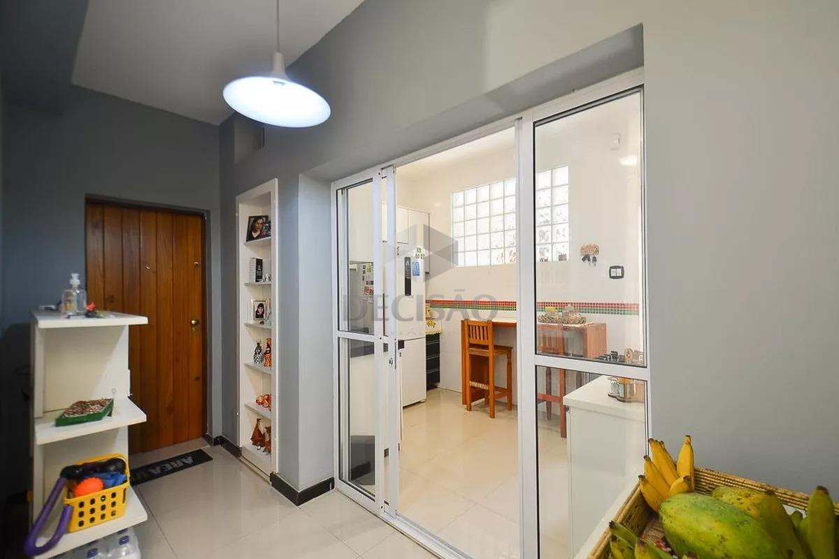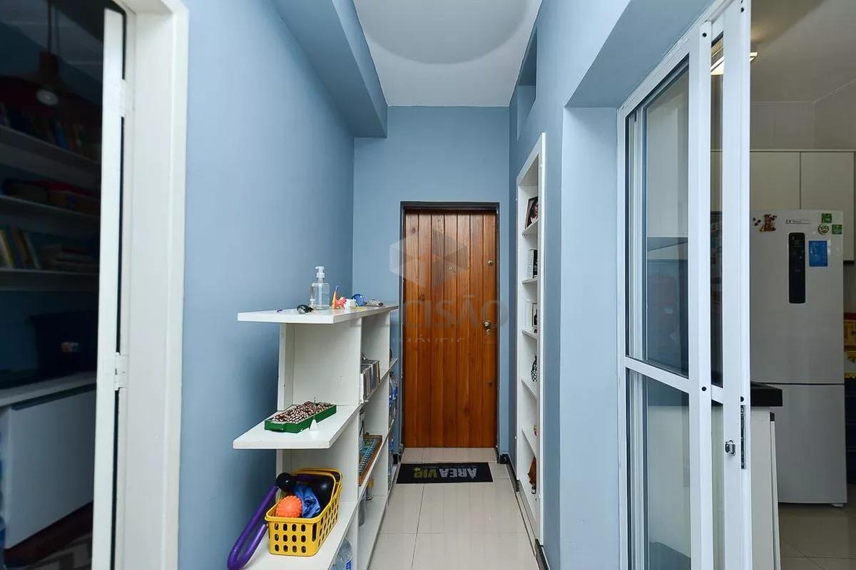 Apto: Sala para 02 ambientes, 02 quartos com armários, banho social (reformado com box, armários e espelho), cozinha com armários, área privativa de aproximadamente 20m².