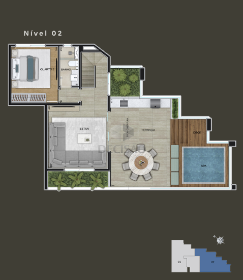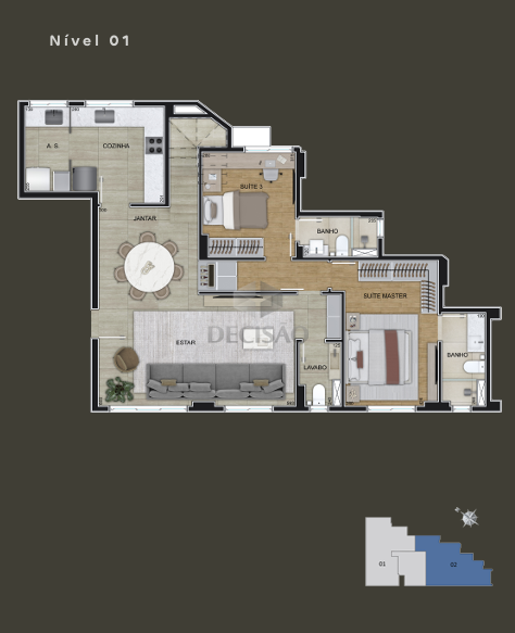 Prédio: De luxo, revestido, jardins, hall decorado, água e gás individualizados, aquecimento solar, circuito tv, interfone, jardim, lazer com academia, piscina, espaço gourmet, wifi nas áreas comuns, portão eletrônico, 02 vagas.