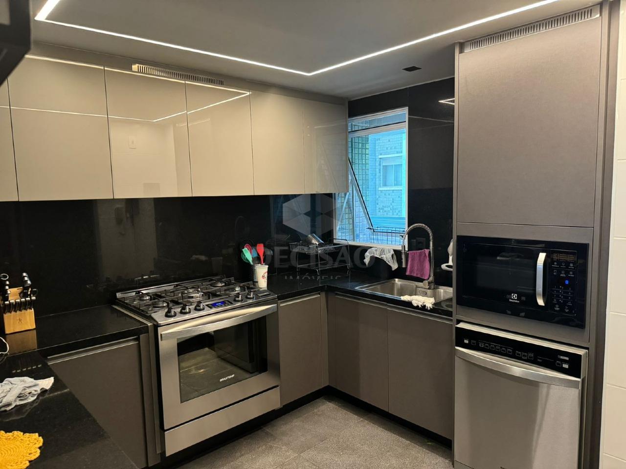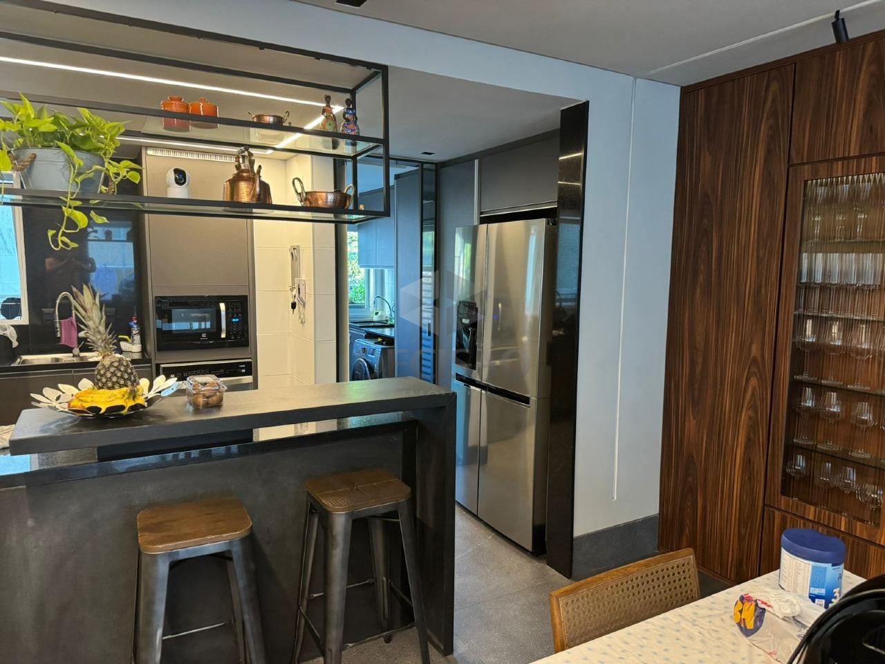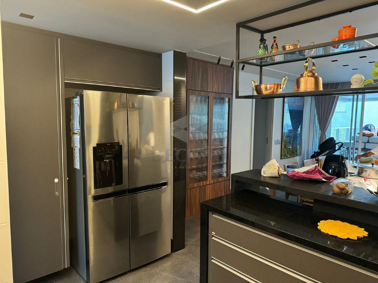 Salão para 02 ambientes com marcenaria, terraço linear com piso em granito, 03 quartos com armários, sendo 01 suíte e banho social (montados), cozinha no conceito aberto com armários, cristaleira, área de serviços e banho de serviços.