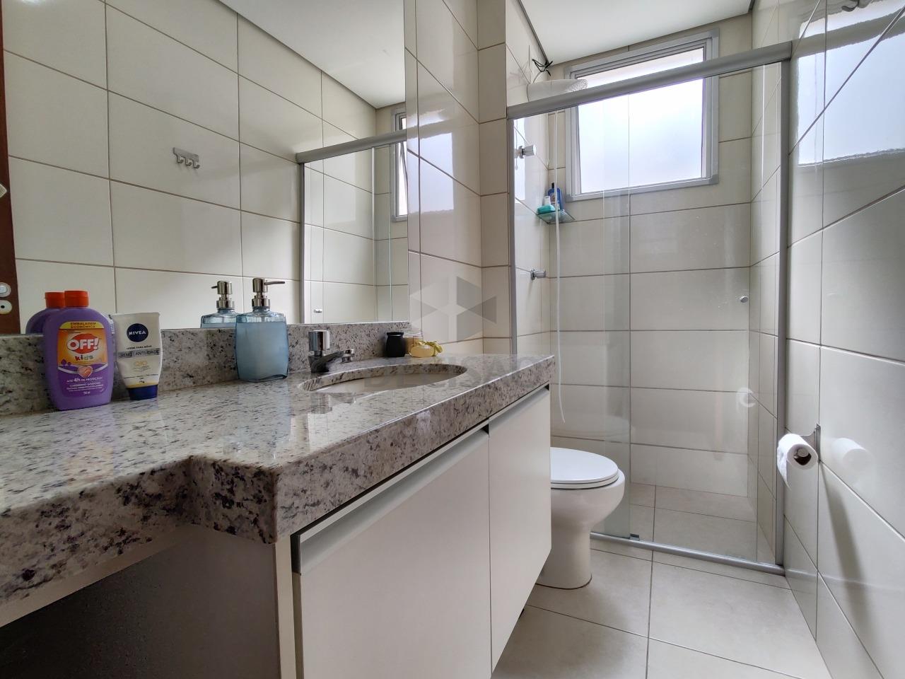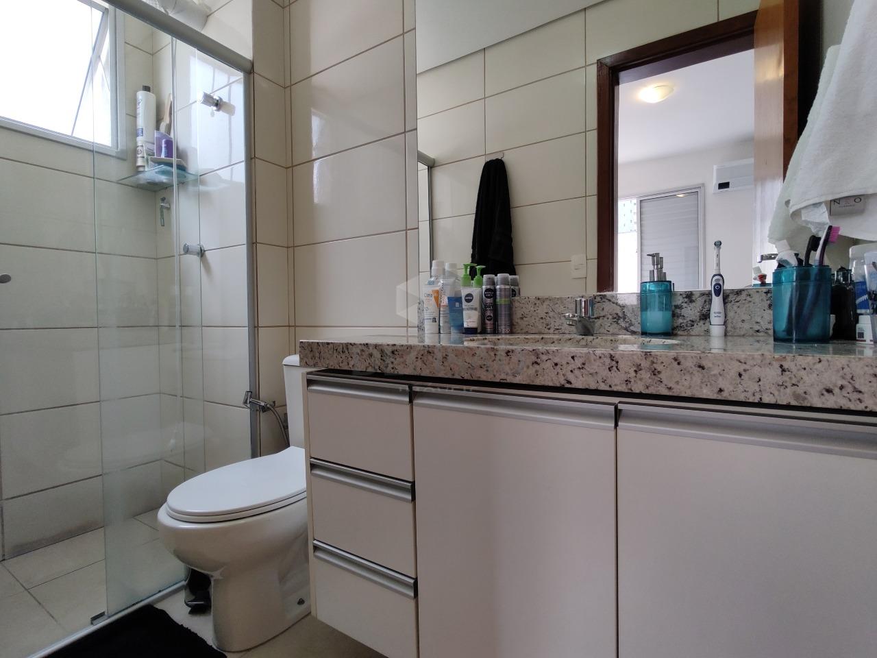 Apto: Sala para 02 ambientes (piso em porcelanato), varanda, 03 quartos com armários, sendo 01 suíte (com ar-condicionado), banho social (com armários, box, espelho), cozinha planejada com armários, área de serviços com dce, área privativa com churrasqueira.