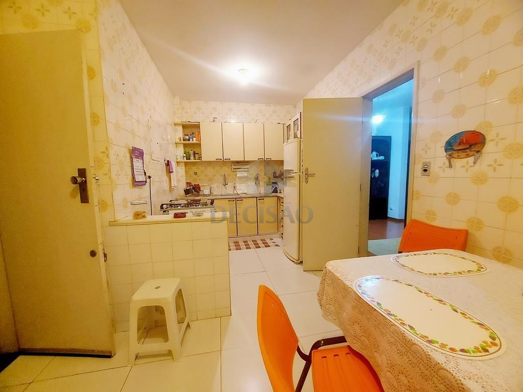Apto: 02 salas (em laminado de madeira), sala de estar e sala de refeição, 04 quartos (em laminado de madeira) com armários, banhos social e suíte (com armários - piso em cerâmica), cozinha ampliada com mesa para lanches e armários, dce (transformada em lavanderia e área de serviços).