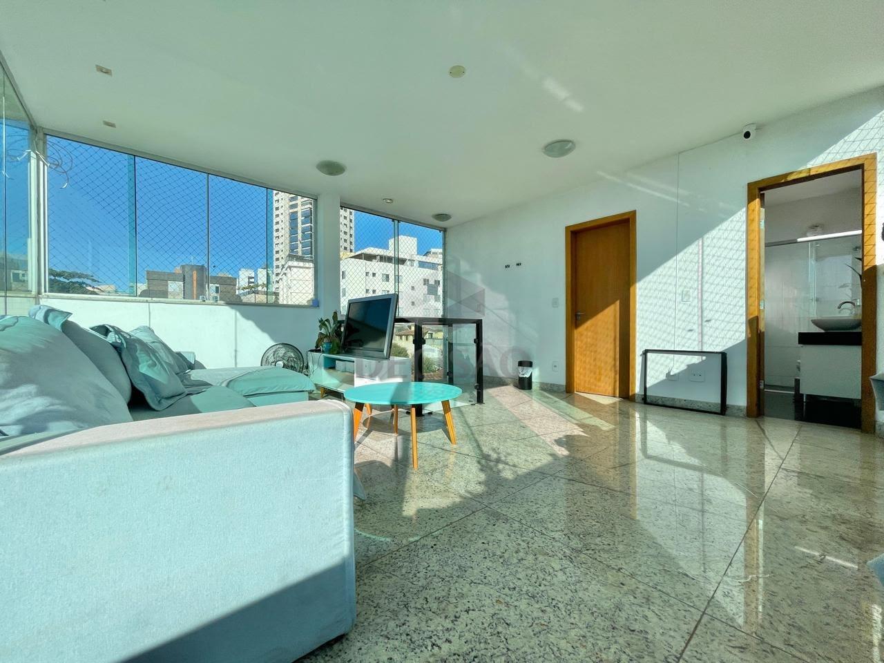 Cobertura: 1º Piso: Sala para 02 ambientes integrada a cozinha americana com bancada de granito, rebaixamento em gesso com iluminação indireta, ótimos armários na cozinha e área de serviços, 02 quartos, sendo 01 suíte + 01 banho social.