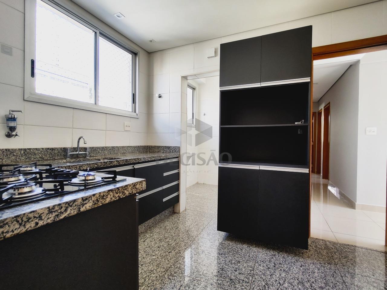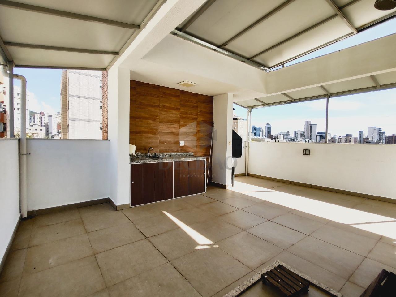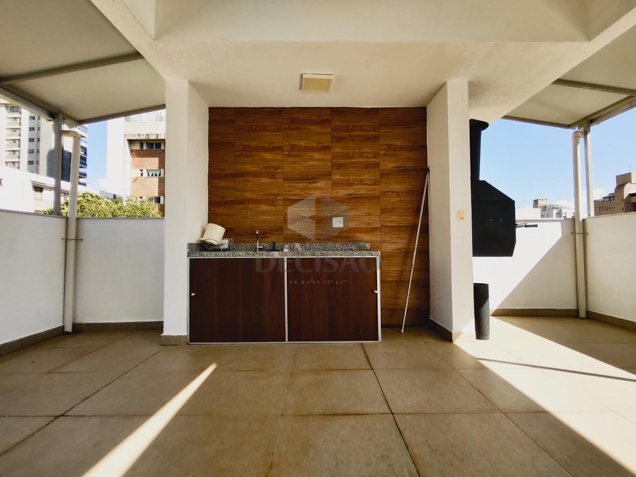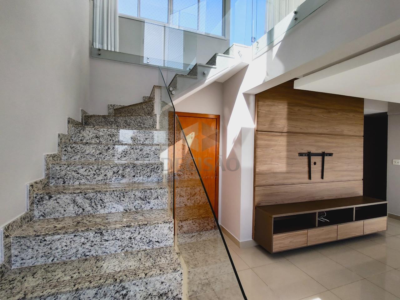 Cobertura: 1º Piso: Sala para 02 ambientes, teto em gesso, iluminação indireta, painel de tv, 03 quartos com armários (pisoem laminado), sendo 01 suíte (com closet), banho social (piso em granito - bancadas com armários, box blindex), cozinha em granito, armários planejados, área de serviços, banho de funcionários.