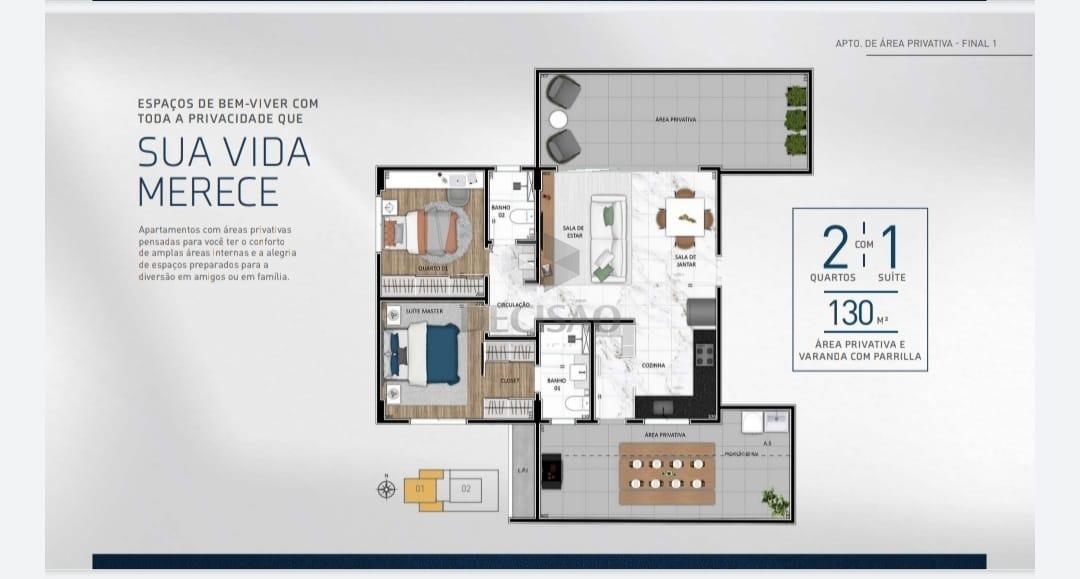 Prédio: Luxuoso, moderno, revestido, recuado, jardins, elevador, hall social, água e gás individual, fechadura digital, tomas USB, 02 vagas ou 03 vagas (vide tabela).
