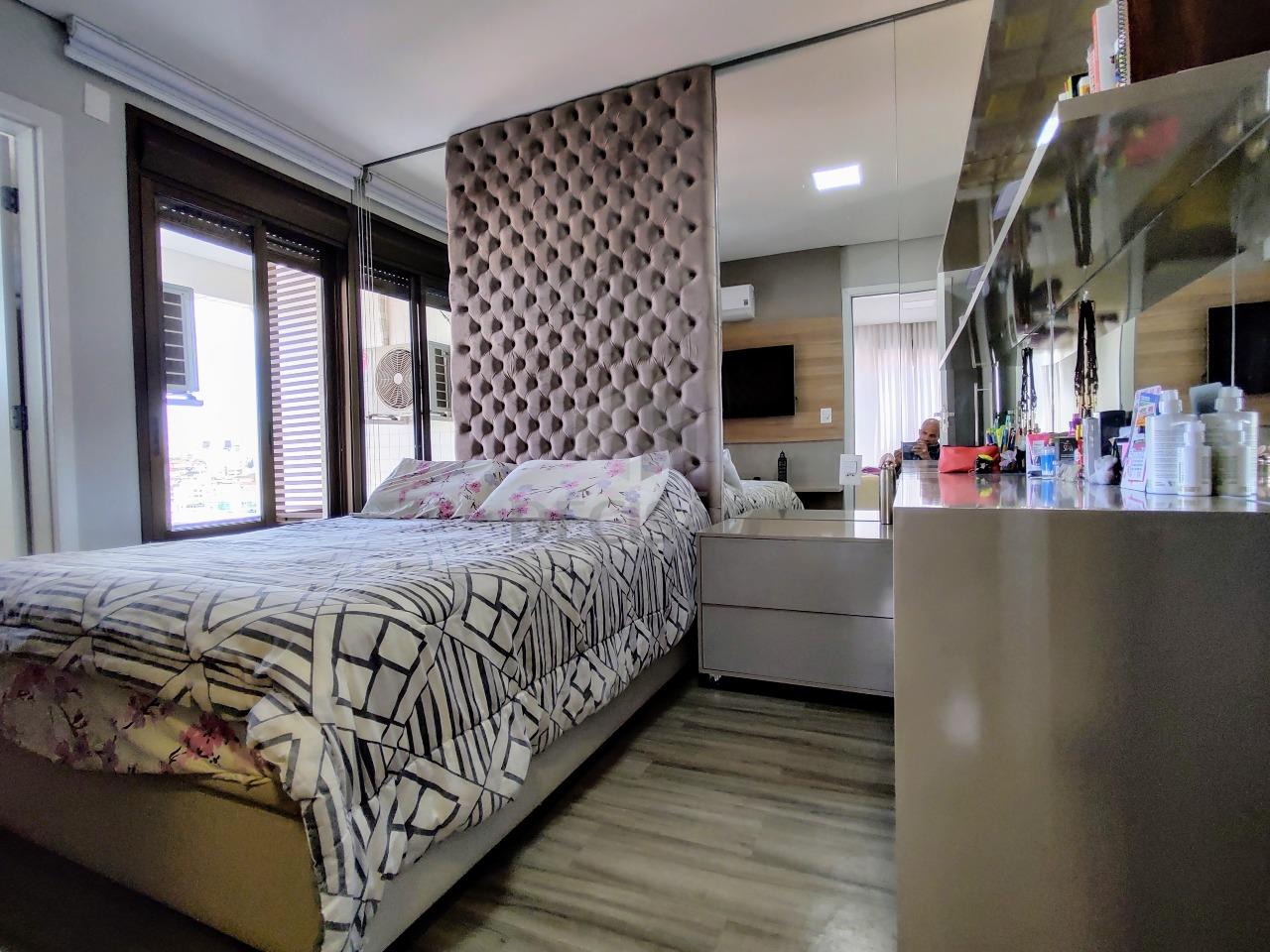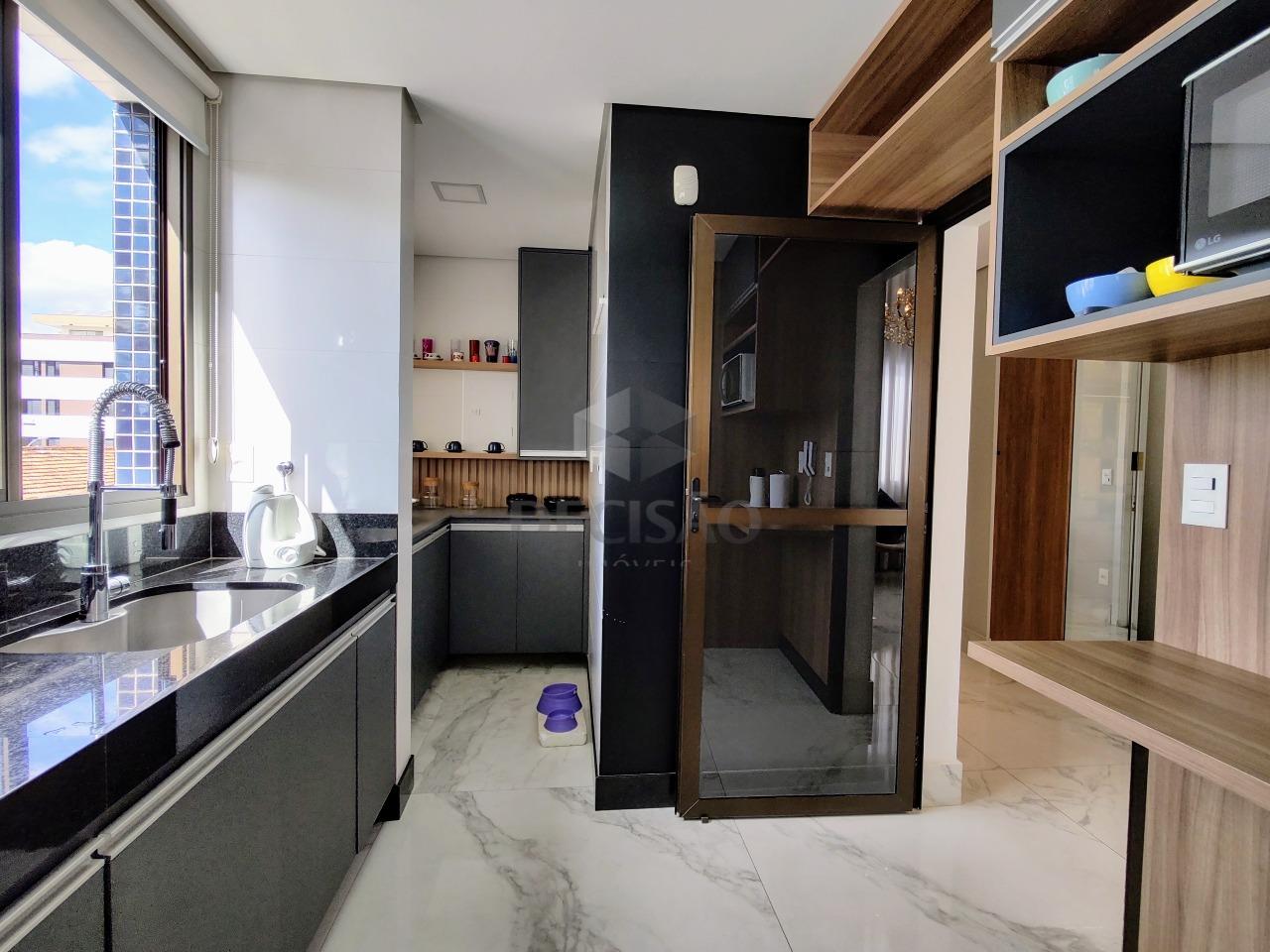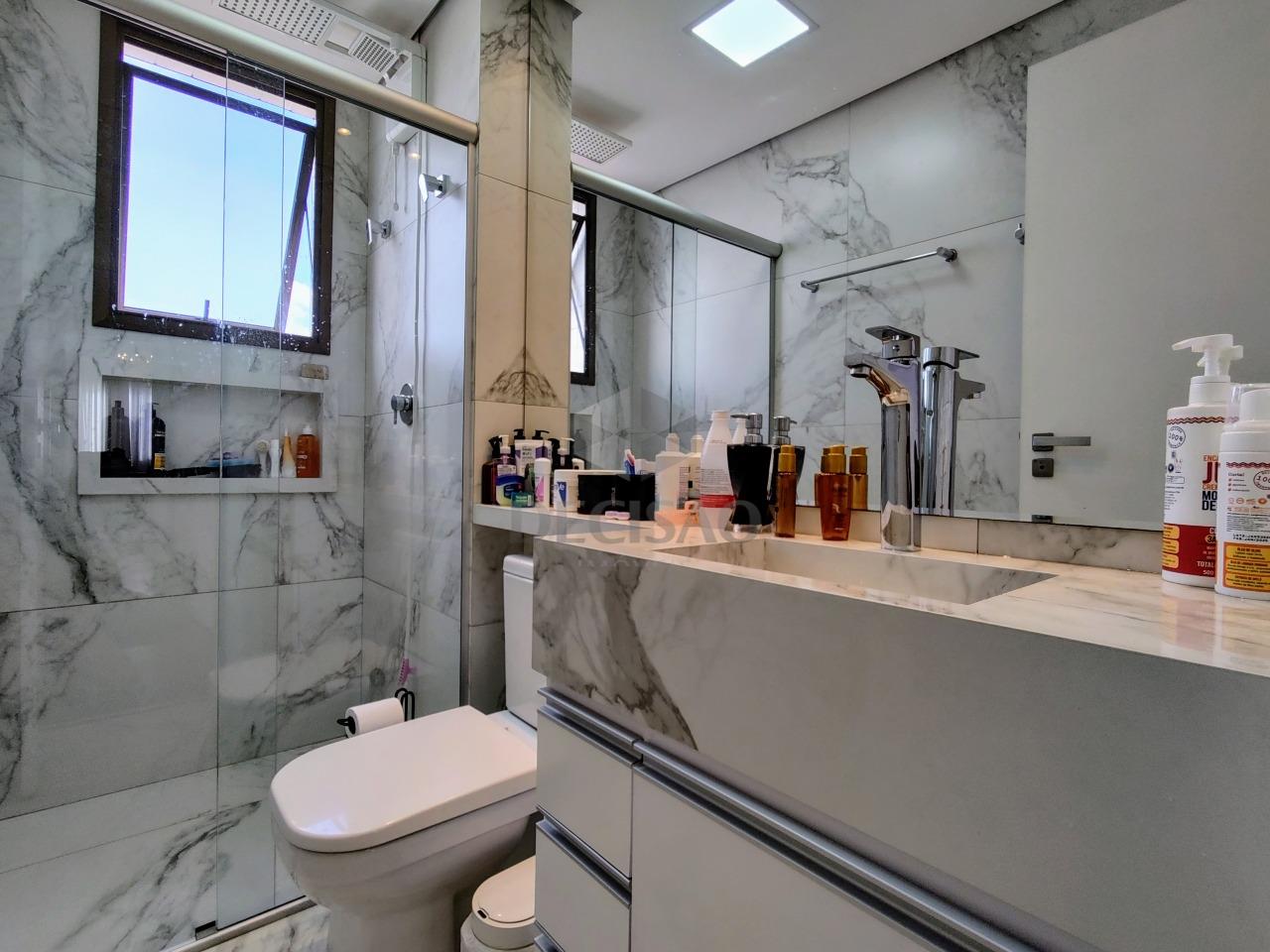 Cobertura: 1º Piso: Sala para 02 ambientes (em porcelanato), pé direito duplo, teto em gesso , iluminação planejada, varanda coberta, lavabo, 03 quartos, sendo 02 suítes (suíte principal com closet, ar-condicionado - janelas com venezianas elétricas - piso em vinílico), cozinha planejada com armários.