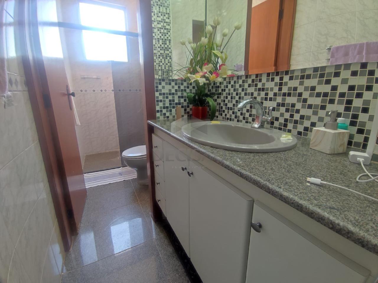 1º Piso: Sala (em porcelanato), 04 quartos com ótimos armários, sendo 01 suíte, banho social (com armários, espelho), rouparia, cozinha com armários (em granito), área de serviços e dce.
