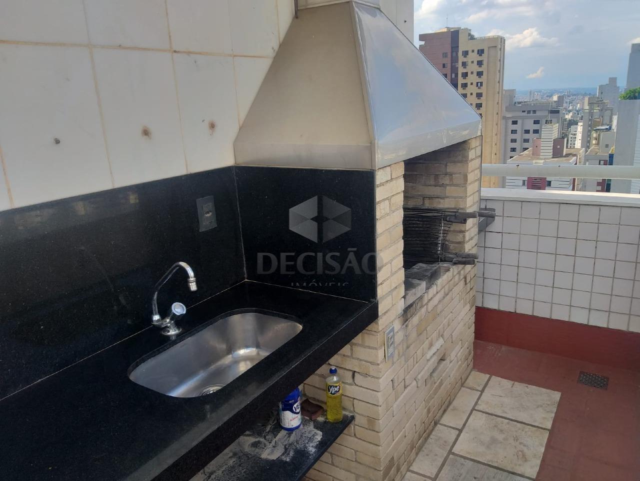 Cobertura: 1º Piso: Sala em "L" para 02 bons ambientes (em tabua corrida) com varanda linda vista para Serra do Curral, 04 quartos , sendo 01 suíte com armários (sendo 01 dos quartos com varanda - piso em tabua corrida) janelas de alumínio com veneziana, banhos social e suíte (montados em granito, bancada em granito), cozinha grande em granito, bancadas em granito com armários sob e sobre bancadas, área de serviços grande com dce.