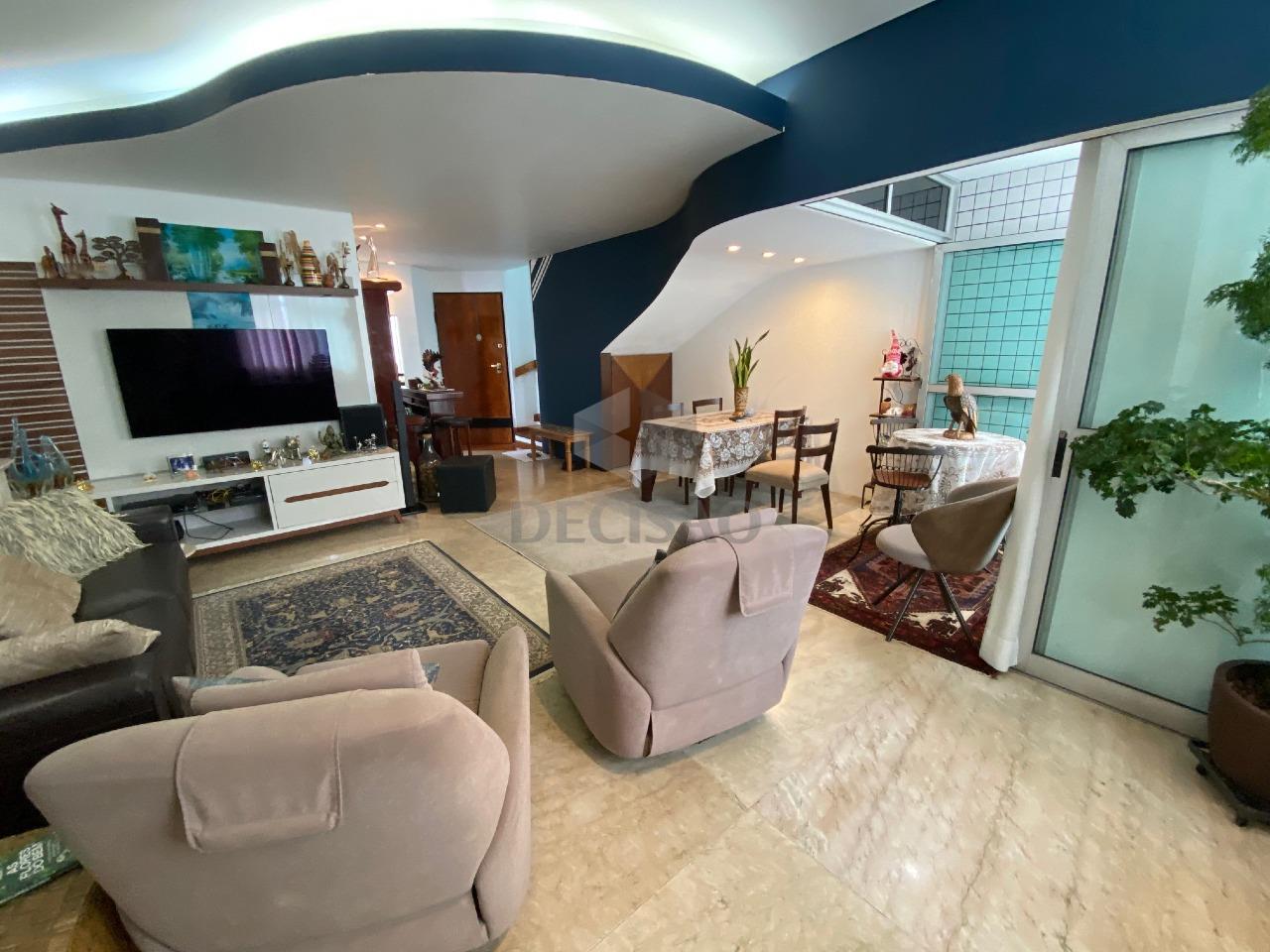 Cobertura Duplex: 1º Piso: Sala para 02 ambientes, integrada com varanda, 01 quarto, semi-suíte com sacada, cozinha planejada, área de serviços com despensa e dce.