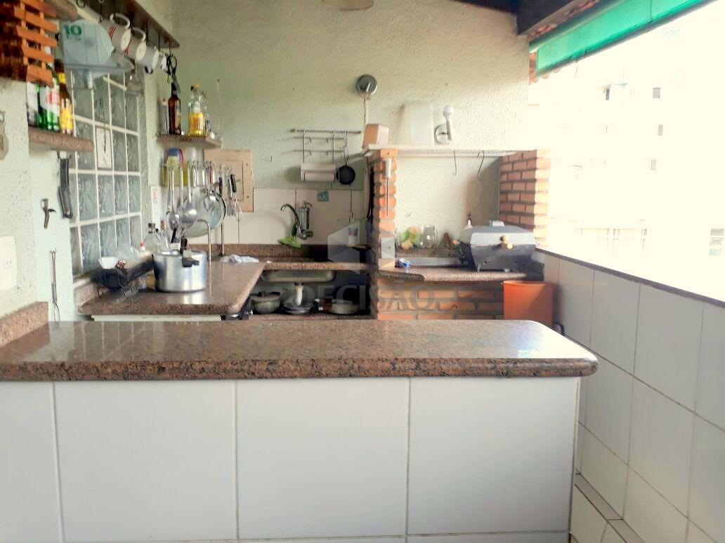 Cobertura: 1º Piso: Sala para 02 ambientes (em porcelanato), 04 quartos (em cerâmica), sendo 02 suíte (master com closet) e banho social (ambos com armários, box e espelho), copa, cozinha em granito com armários, dce.