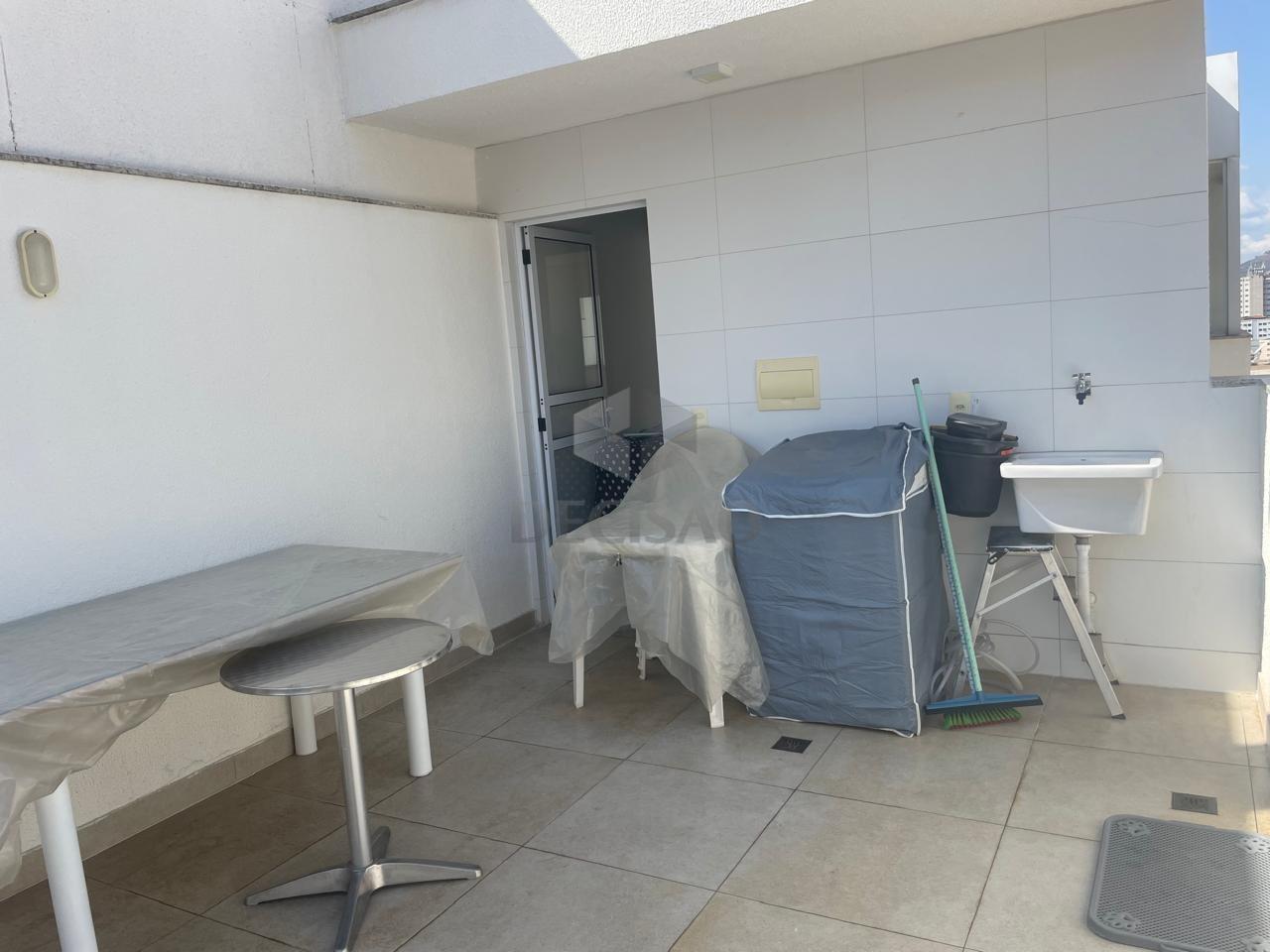 Cobertura: 1° piso: Sala (piso em porcelanato), 01 quarto, cozinha com armários, banho social (com box e armário), escada com piso em porcelanato e granito.