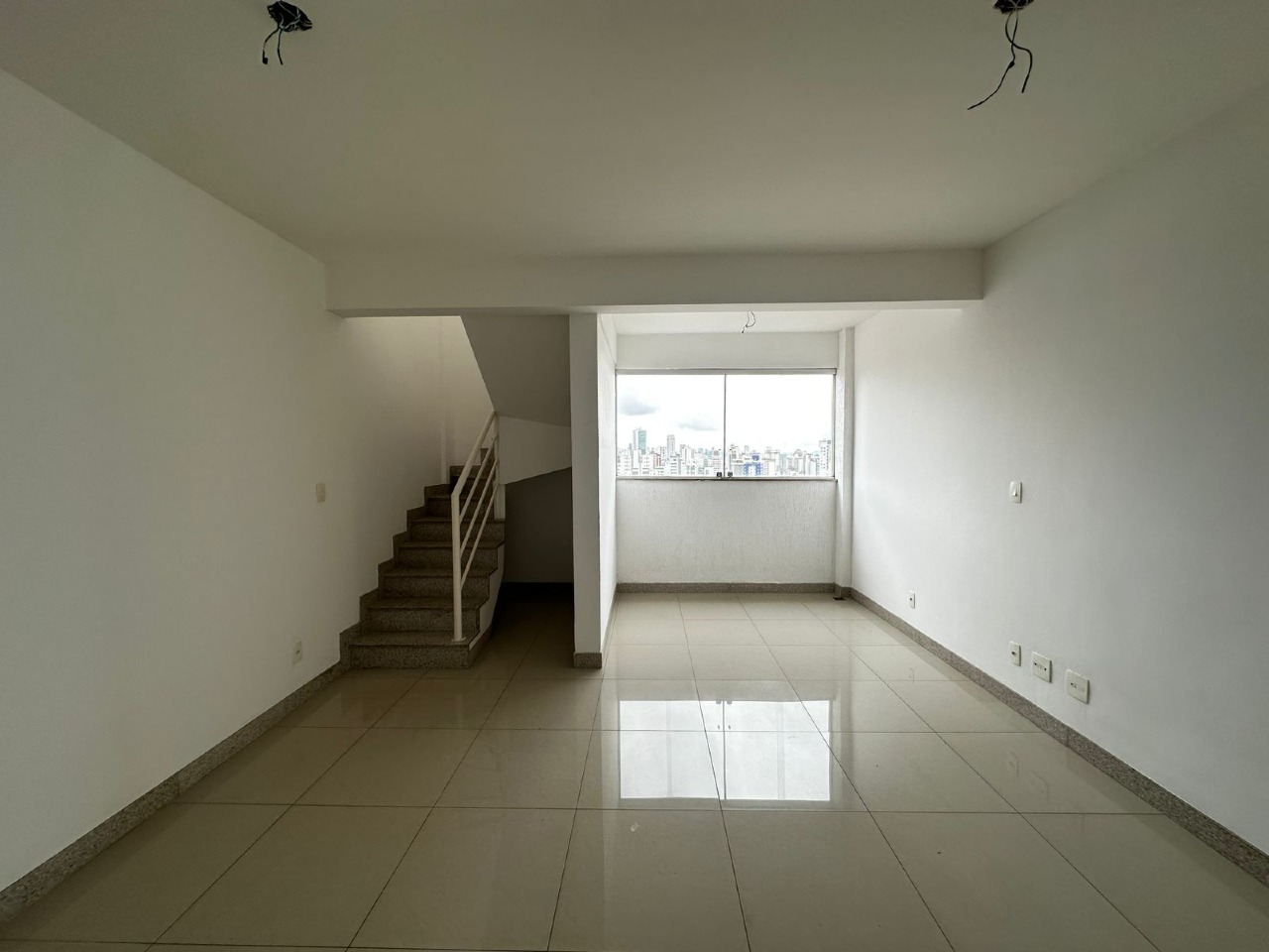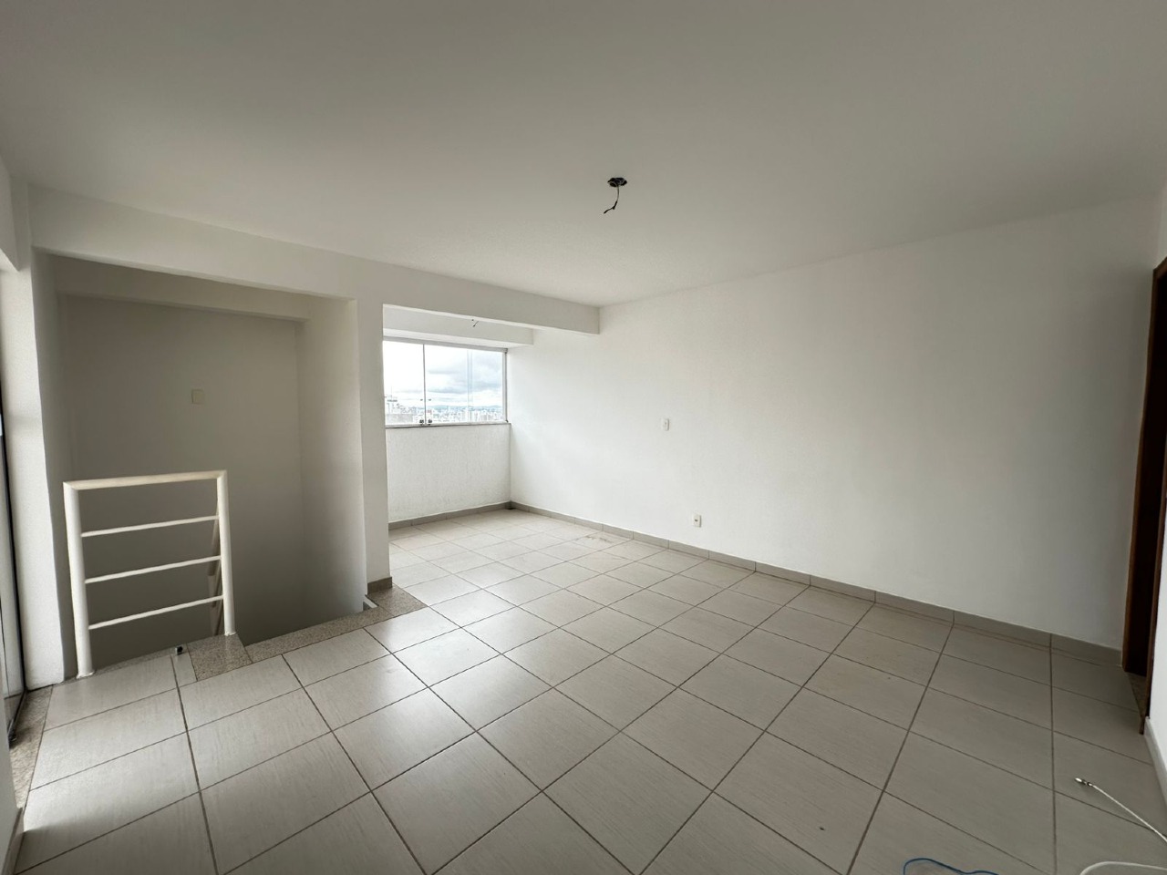 2º pavimento: Sala ampla, banheiro social e área externa com vista, equipada com churrasqueira e ducha, ideal para receber amigos e aproveitar momentos de lazer.