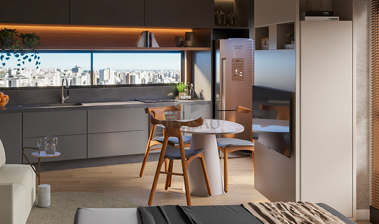 Prédio: Arquitetura contemporanea e diferenciada, 100% revestido, recuado, jardins, portaria virtual, smart lockers, CFTV, aquecimento central, medido de água individual, rooftop com wine bar, 01 vaga de garagem.
