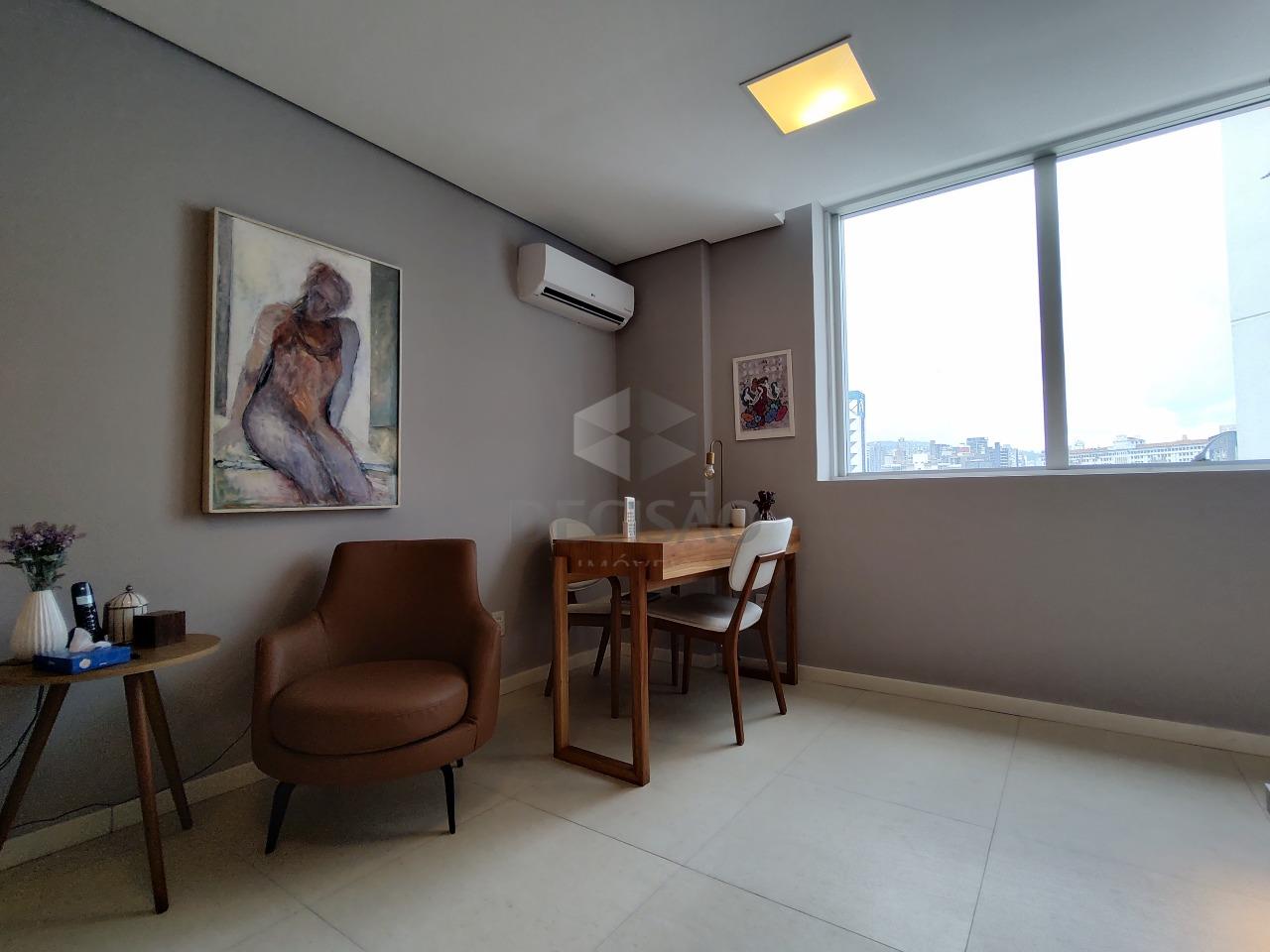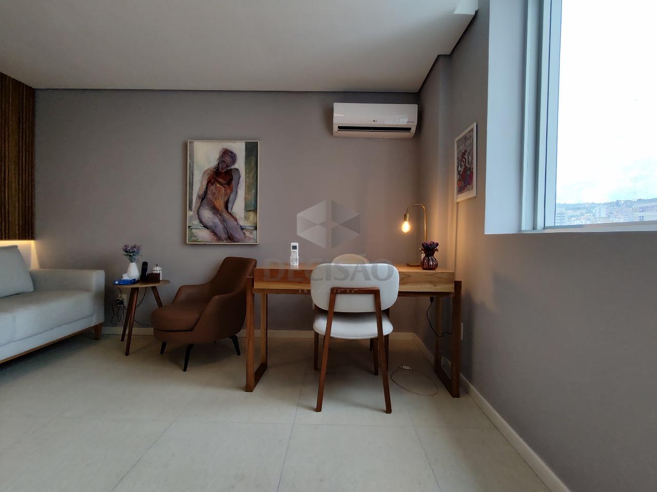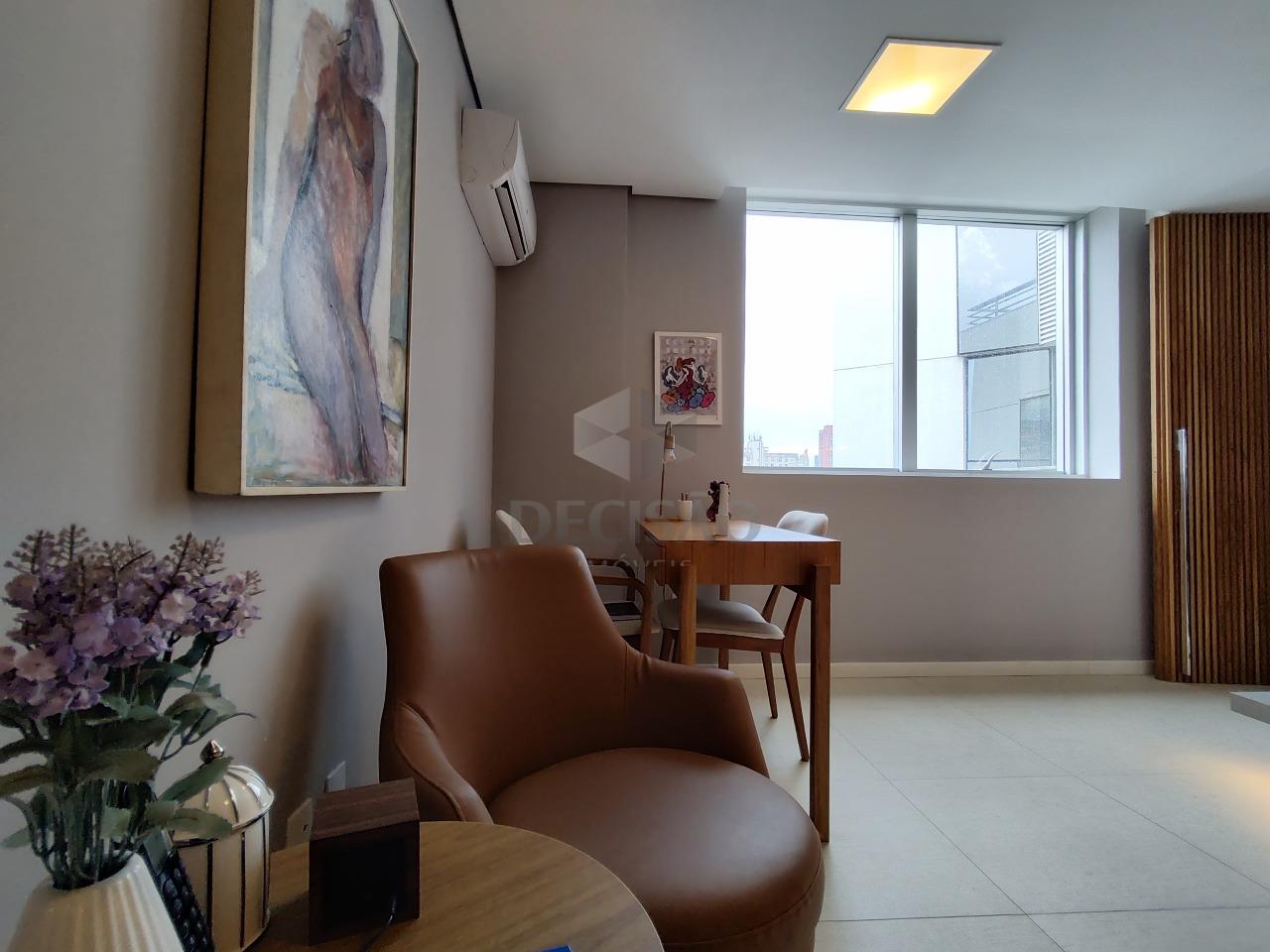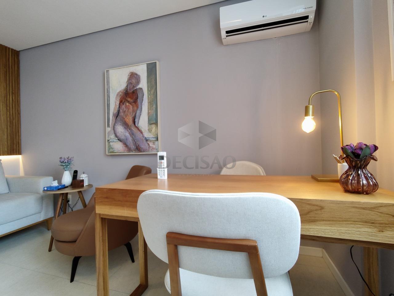 Sala : Comercial, totalmente pronta para uso e finamente decorada, móveis planejados de alto padrão, climatizada, com ar condicionado, acabamento de primeira (piso em porcelanato) e teto rebaixado com projeto de iluminação, 01 banho privativo.