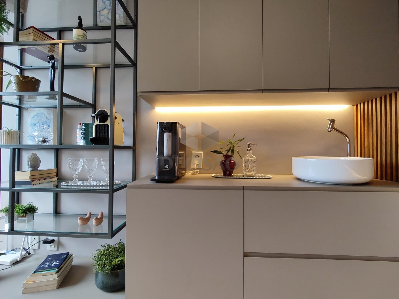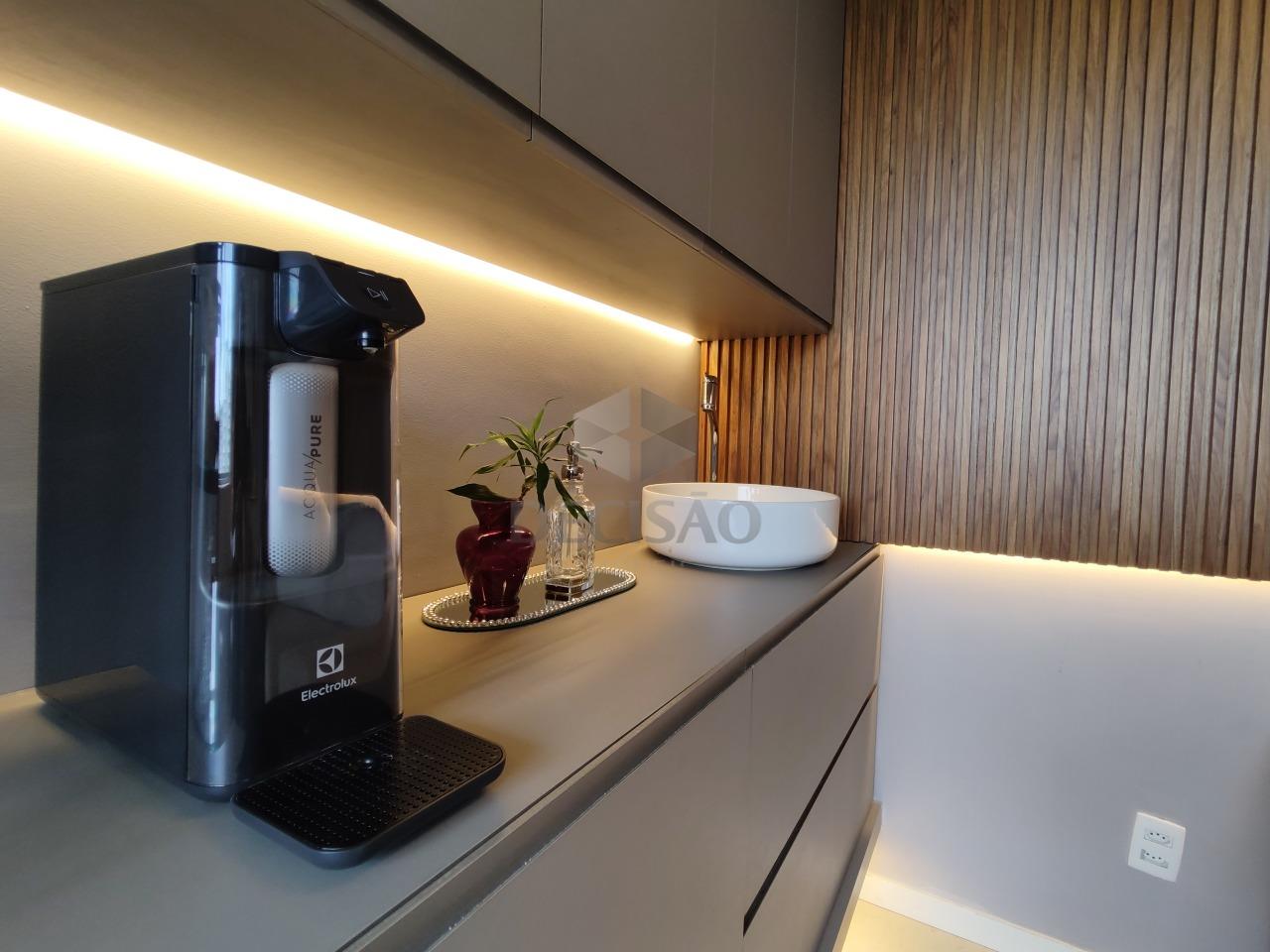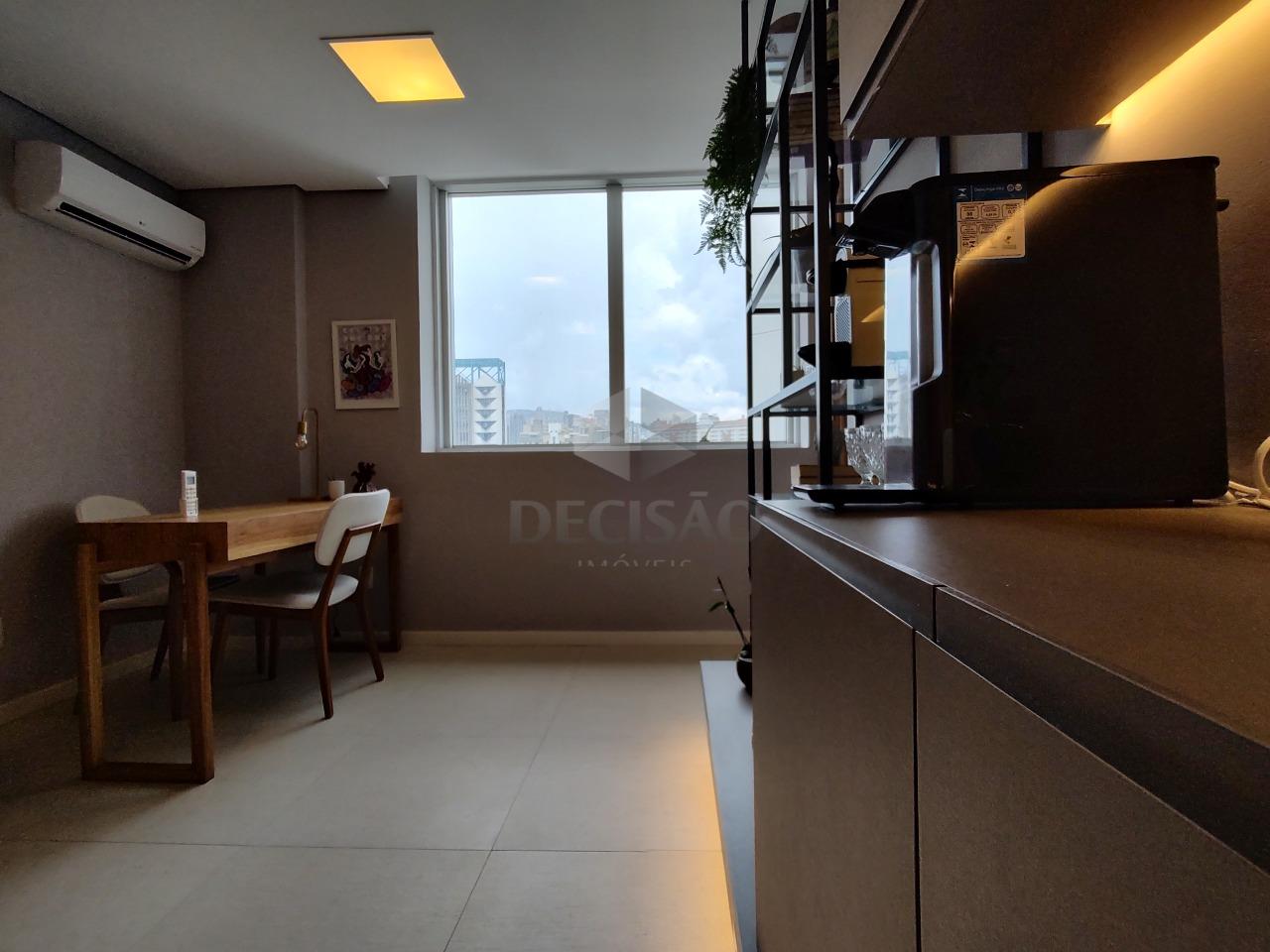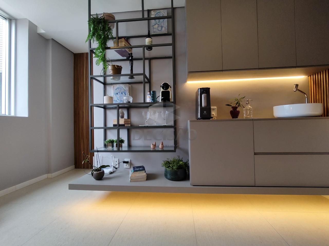 Sala : Comercial, totalmente pronta para uso e finamente decorada, móveis planejados de alto padrão, climatizada, com ar condicionado, acabamento de primeira (piso em porcelanato) e teto rebaixado com projeto de iluminação, 01 banho privativo.