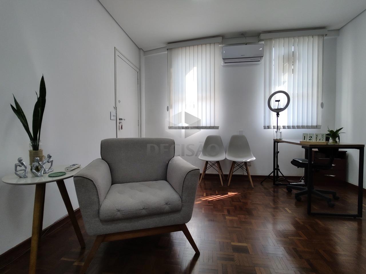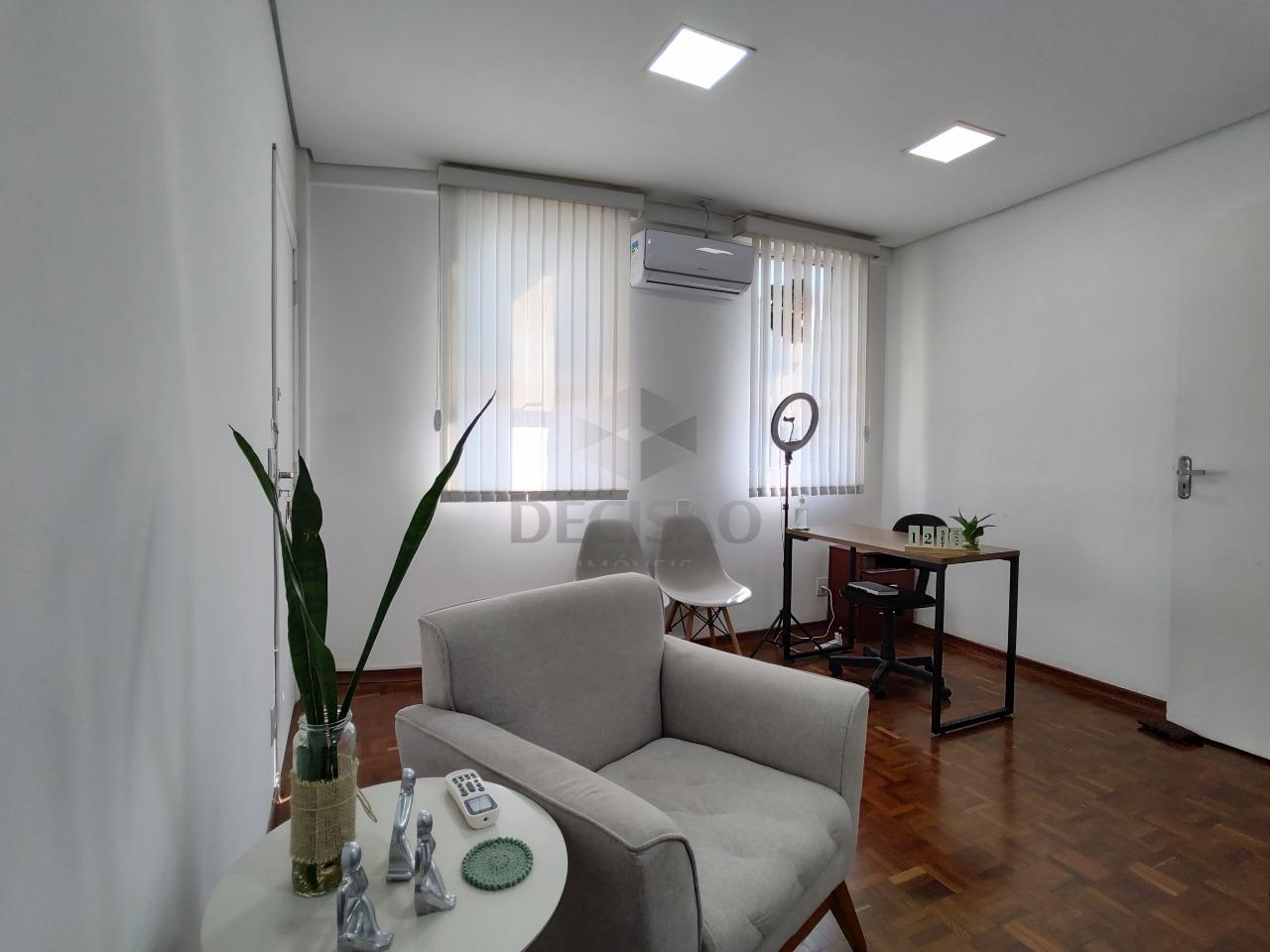 Sala: Com 61,02m², ambiente claro, aconchegante, subdividido em 03 ambientes, sendo 01 recepção, sala de trabalho, sala de reunião, banheiro privativo, cozinha, ambiente climatizado (piso em taco), sala com duas entradas independentes.