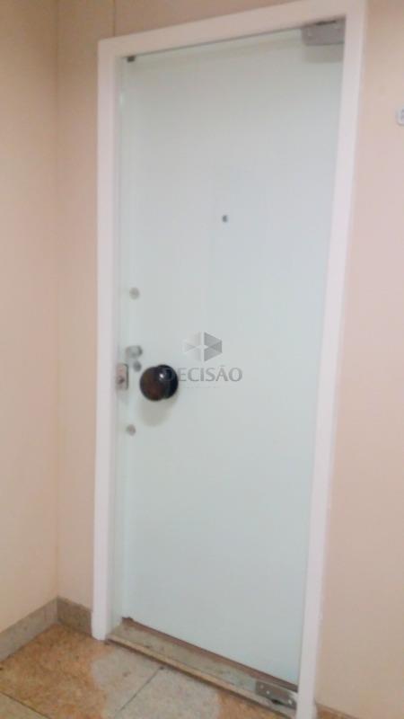 Sala reformada no Funcionários, com iluminação planejada, cortinas, ar-condicionado, piso laminado novo, biombo de madeira e banho com armários sob bancada de granito. Prédio revestido em granito e cerâmica, com portaria 24h, circuito de TV, catracas e 3 elevadores.